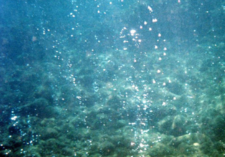 Des gaz d’évacuations chauds comprimés depuis le fond de la mer s’échappent de la surface du sol et créent un rideau de bulles chaudes. Comme ça fait effectivement penser à des bulles de champagne (ou de Perrier, mais c’était moins glamour), le phénomène a donné son nom au site.