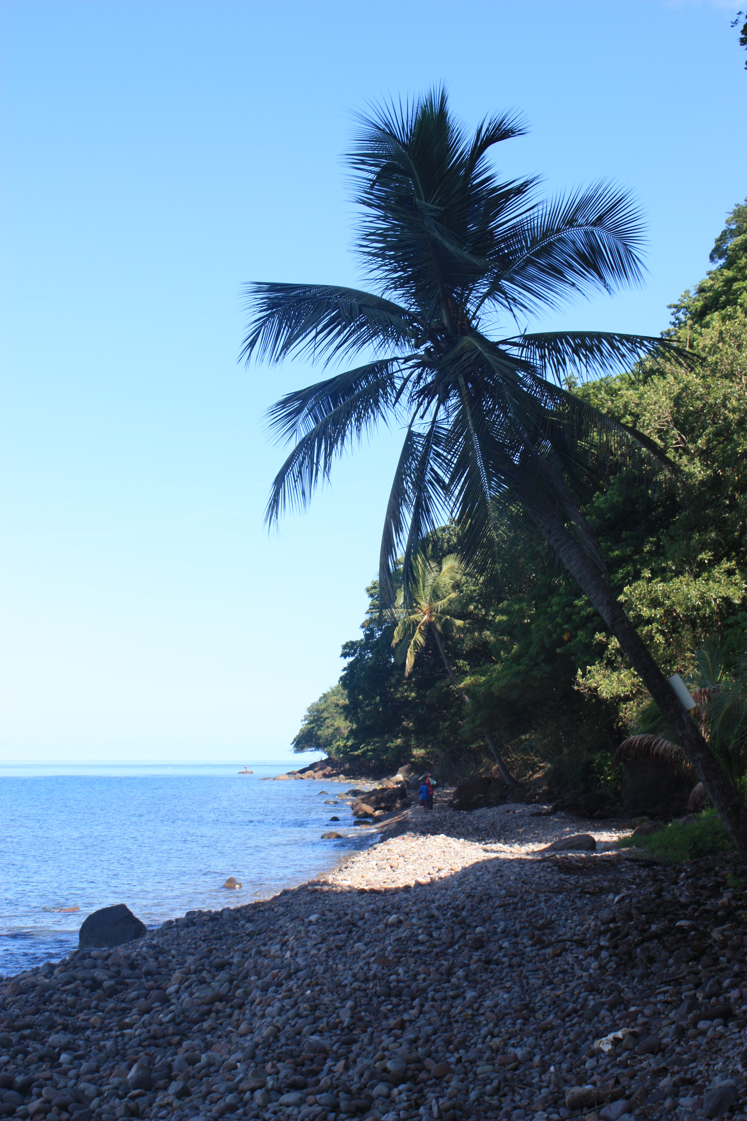 Ce que je vois c’est une belle plage avec des palmiers, de la végétations et personne.
