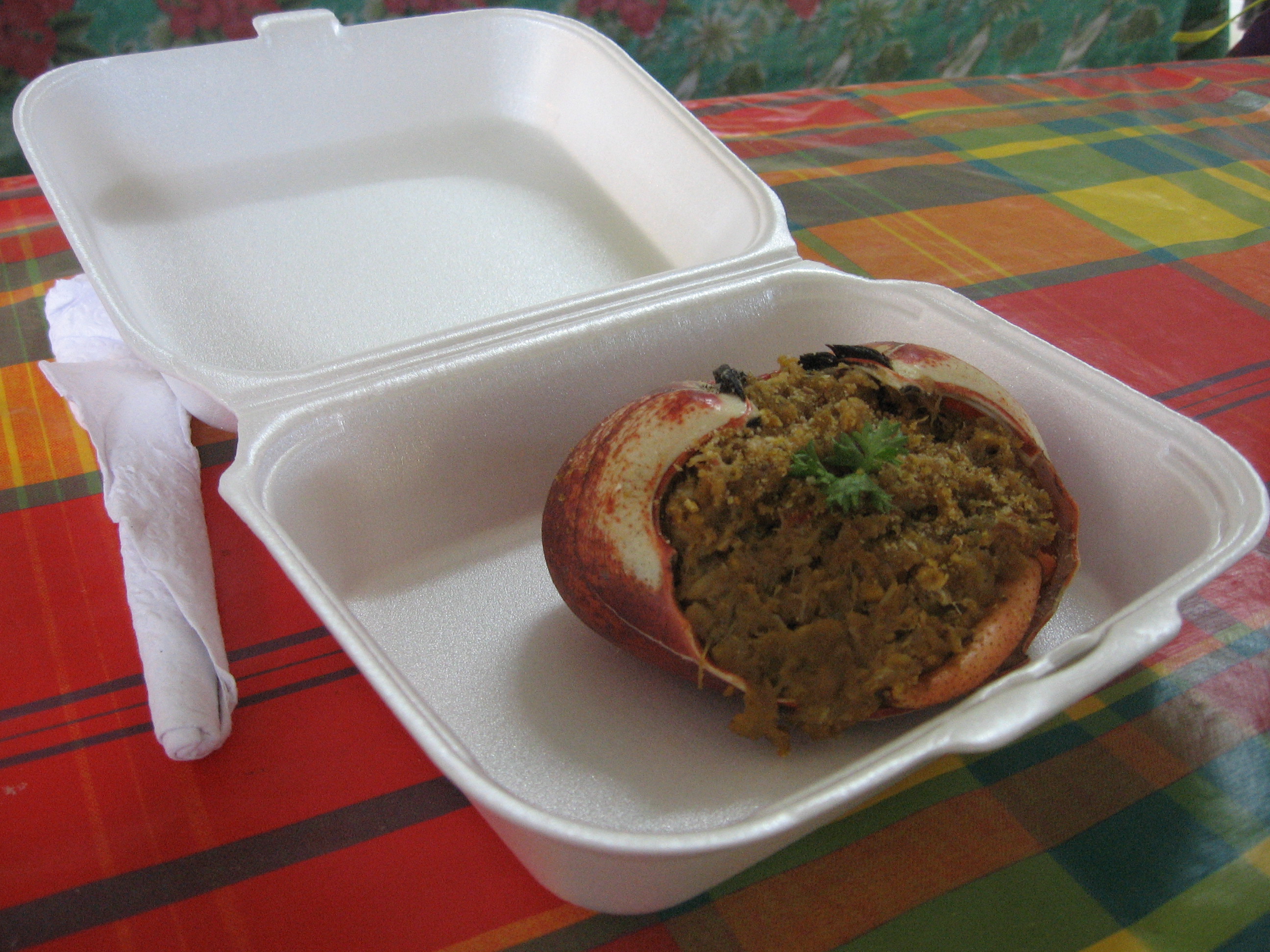 On trouve aussi de la nourriture créole, ici un « Crab back ».