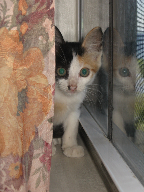 J’ai récupéré ce chaton dans ce qu’on peut difficilement appeler autrement qu’un bidonville, où il vivait en compagnie de plusieurs chiens qui lui menaient la vie dure. Il est donc arrivé chez moi absolument mort de peur, tout crotté, et couvert de puces.
