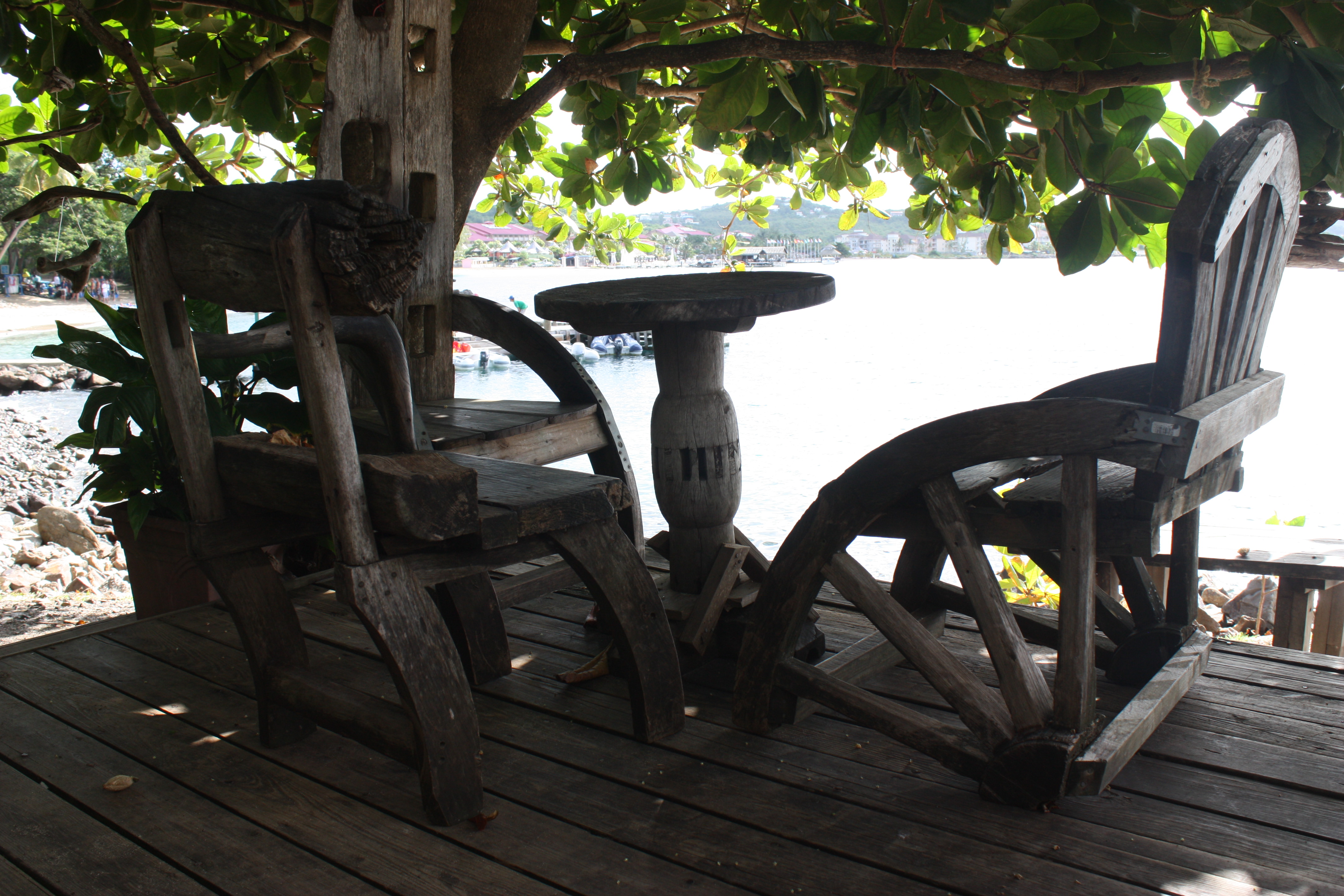 Le lieu a été occupé par des européens à partir du 16ème siècle. Un des personnages les plus intéressants qui y ait laissé sa trace est un pirate français, François Le Clerc, dit « Jambe de bois » (je vous laisse deviner pourquoi). Comme la majorité des pirates français, il était originaire de Normandie (les Normands ont toujours été réputés pour être un peuple d’aventuriers fiers et farouches. Et je sais de quoi je parle, j’en ai un à la maison). Jambe de bois était basé sur Pigeon Island. et attaquait les navires espagnols avec son équipage de 330 hommes. Aujourd’hui, un petit restaurant sur les bords de l’île porte son nom. On m’en avait beaucoup parlé comme le restaurant le plus sympa de Ste-Lucie, et effectivement, c’est TRES sympa.