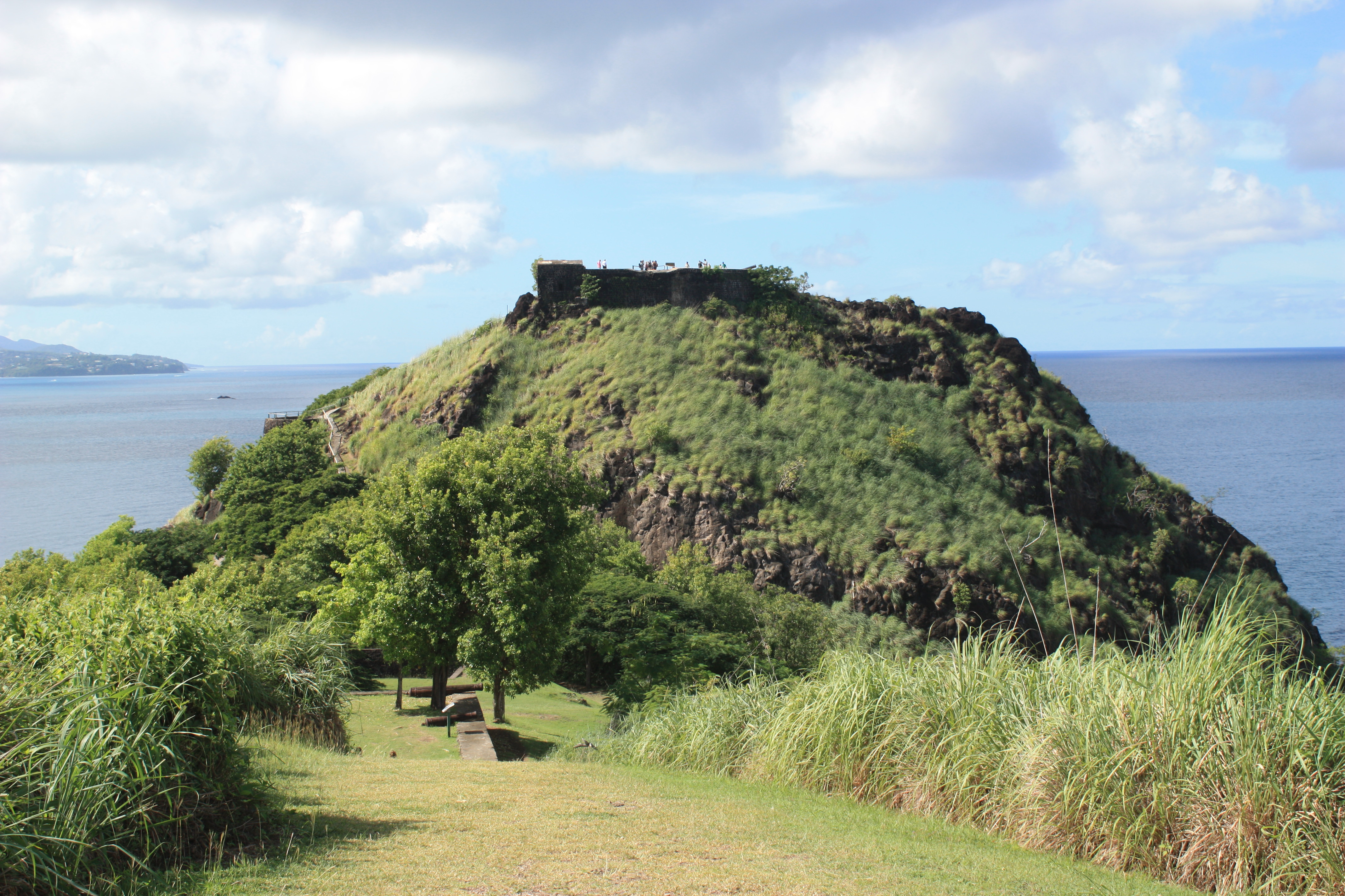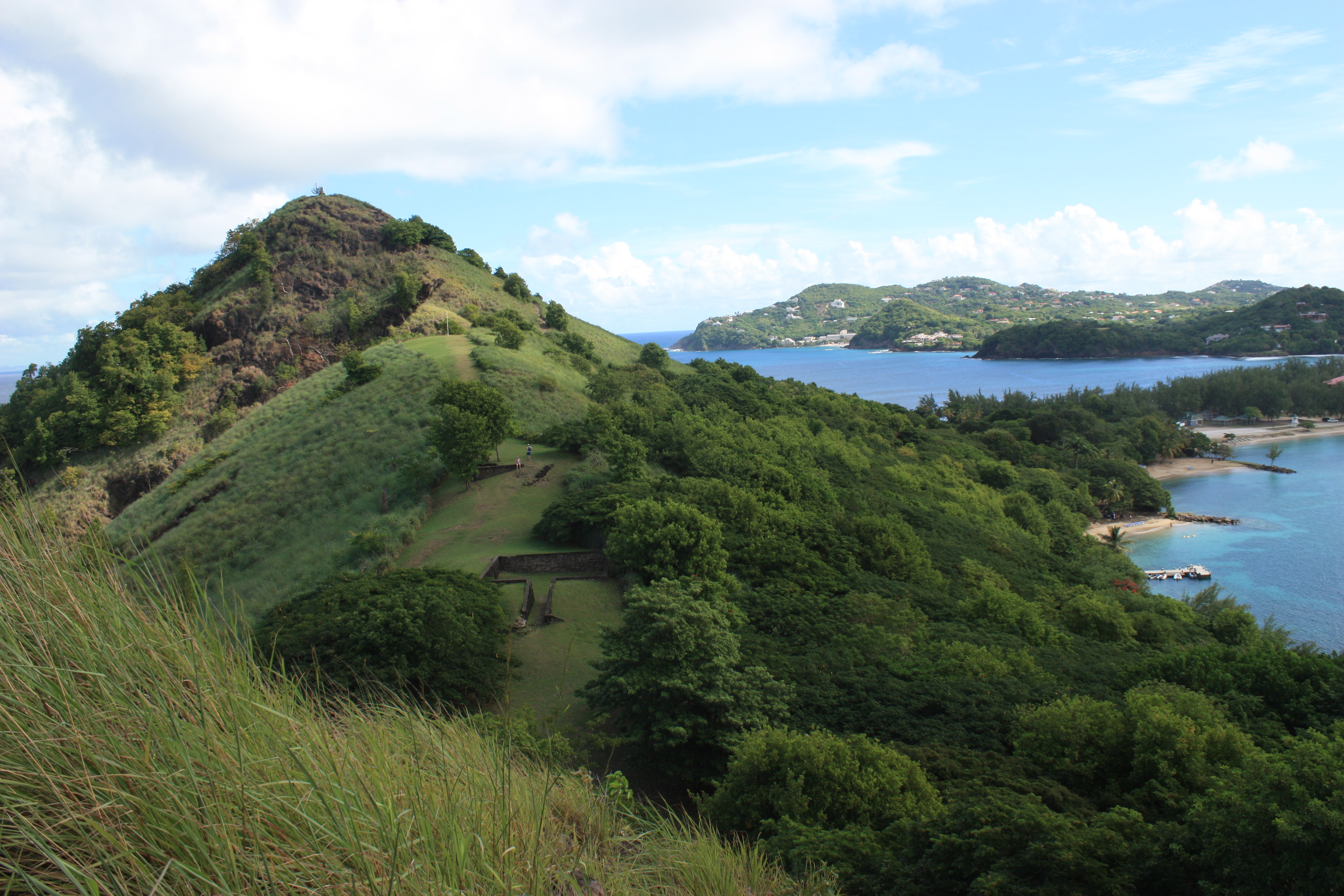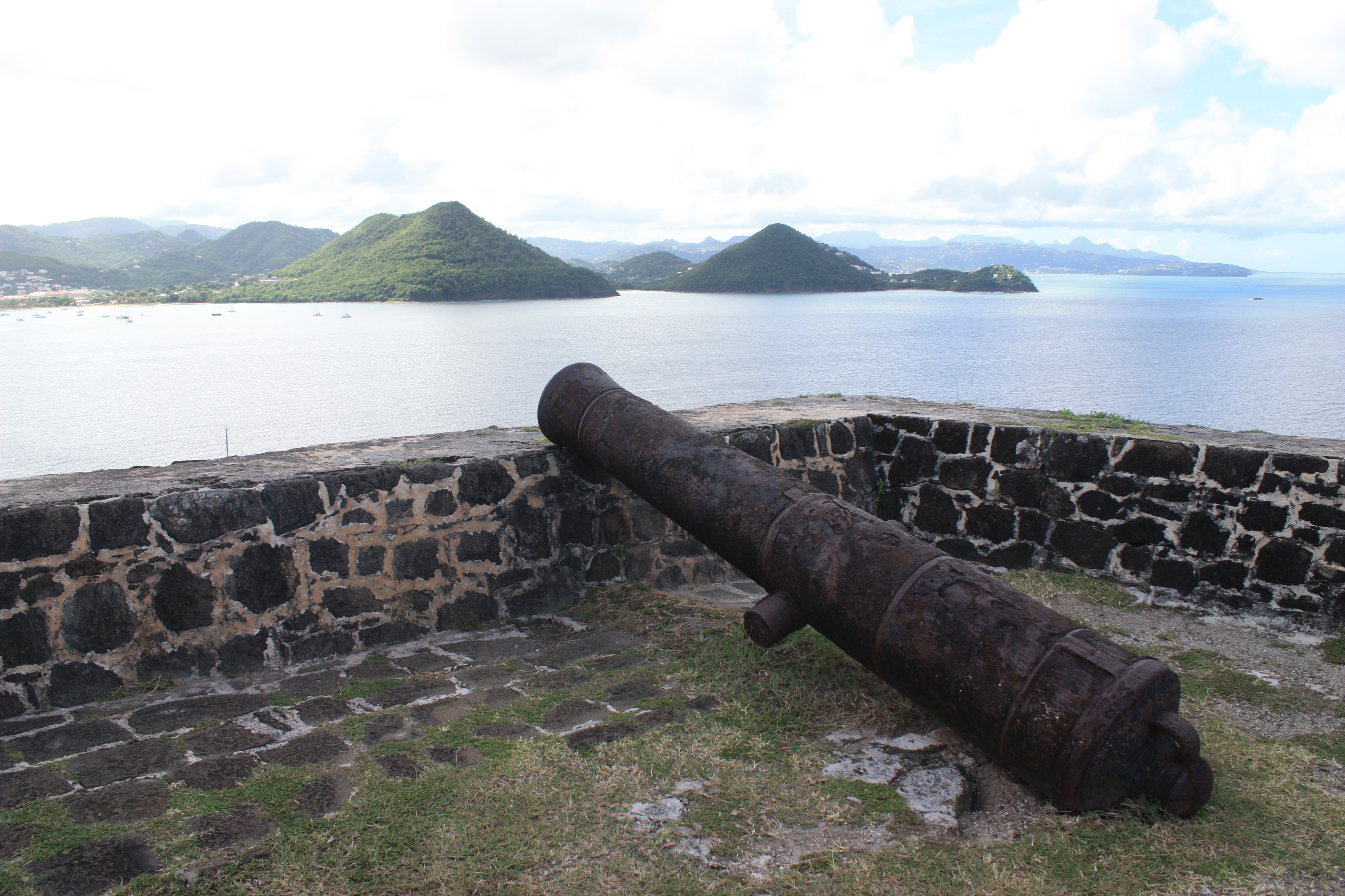 Depuis le Fort, on peut voir jusqu’en Martinique. En 1782, Rodney a vaincu l’Amiral de Grasse dans la bataille des Saintes (une victoire majeure pour la conquête des Antilles). Aujourd’hui on peut se balader entre les ruines des baraquements.