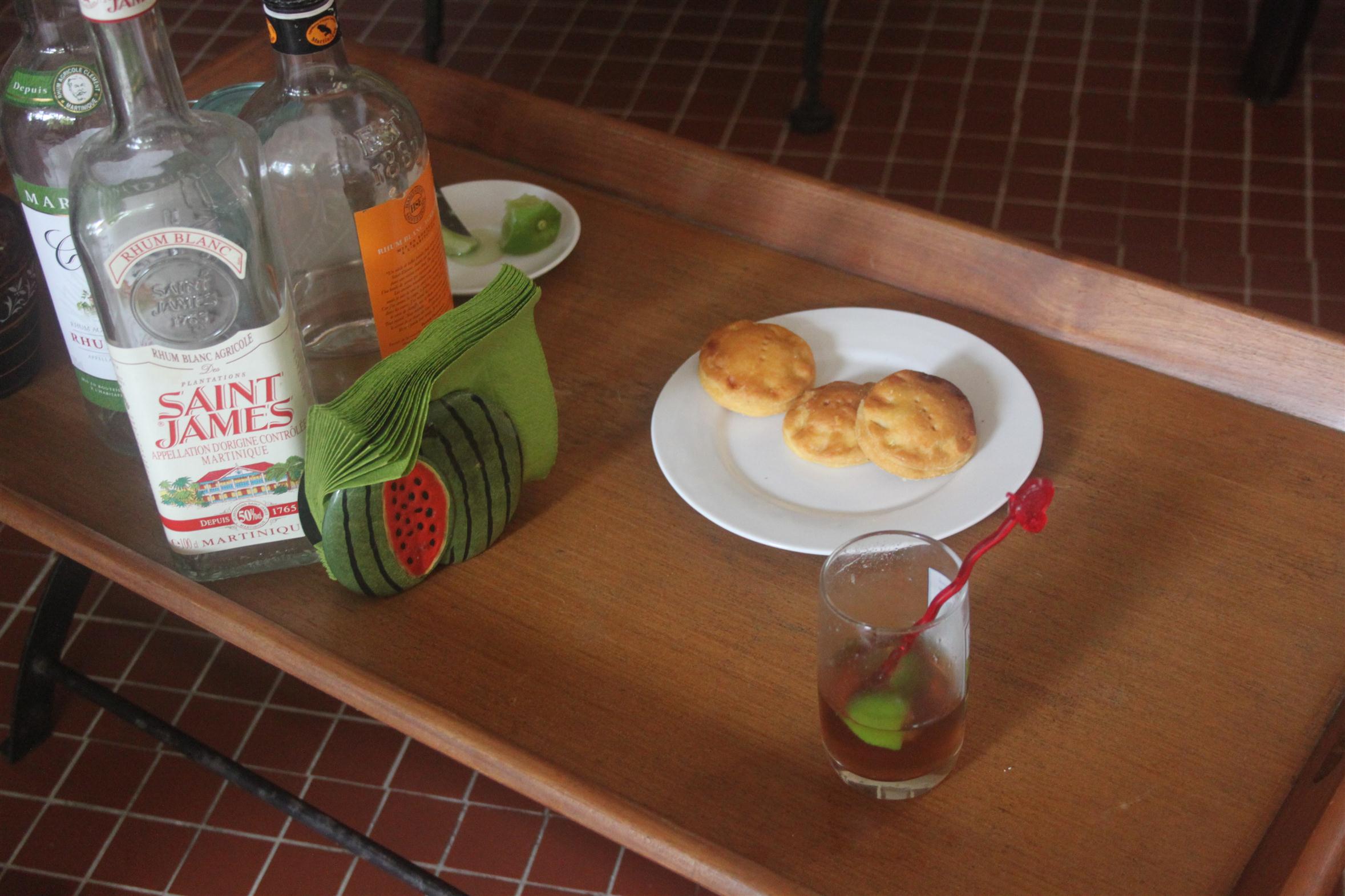 Côté boisson, on déguste le schrubb maison, qu’on prépare dès la fin du mois de novembre: une liqueur à base de rhum blanc, d’écorces d’orange et de mandarine, de cannelle, de vanille et de muscade. Autre classique de Noël: le rhum avec du sirop de groseille. Et les liqueurs en général: liqueur de citron, de cacahuète, punch coco… et bien sûr, le « feu »: le ti punch (j’ai bu assez de rhum pour un moment: on a beau aimer ça, trop de rhum tue le rhum!)