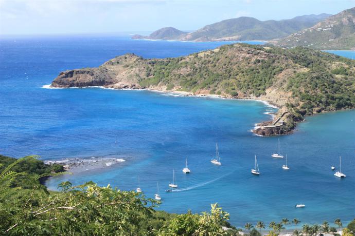Après la visite, nous nous sommes dirigés vers les hauteurs de Shirley Heights. Il subsiste quelques ruines d’un ancien fort mais c’est surtout la vue imprenable sur la baie qui est intéressante.