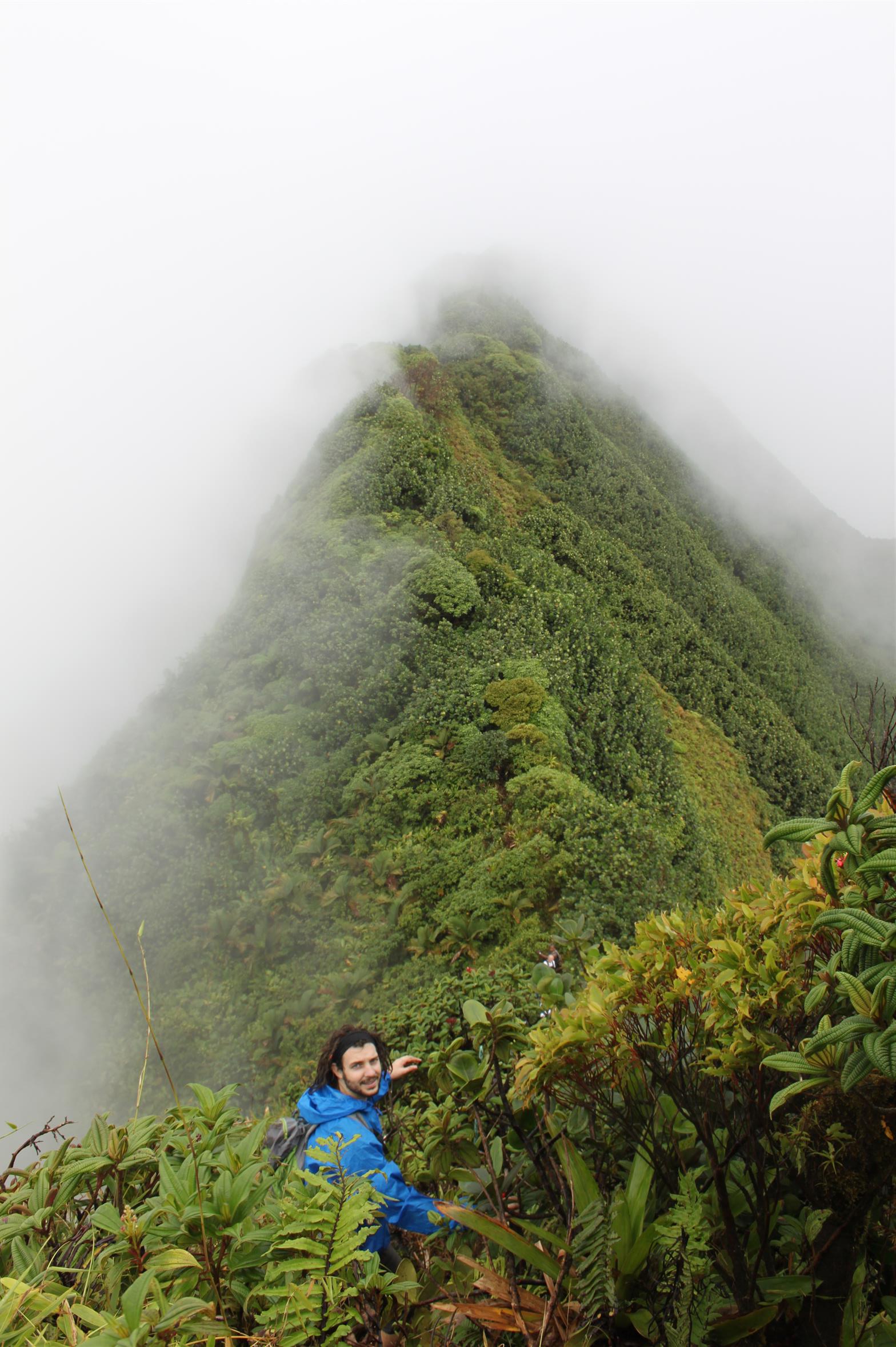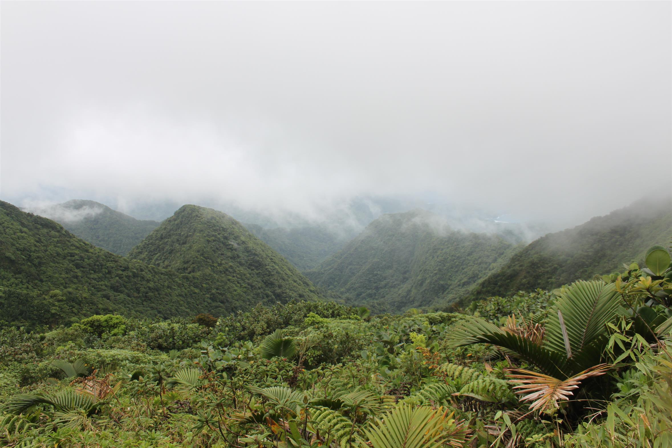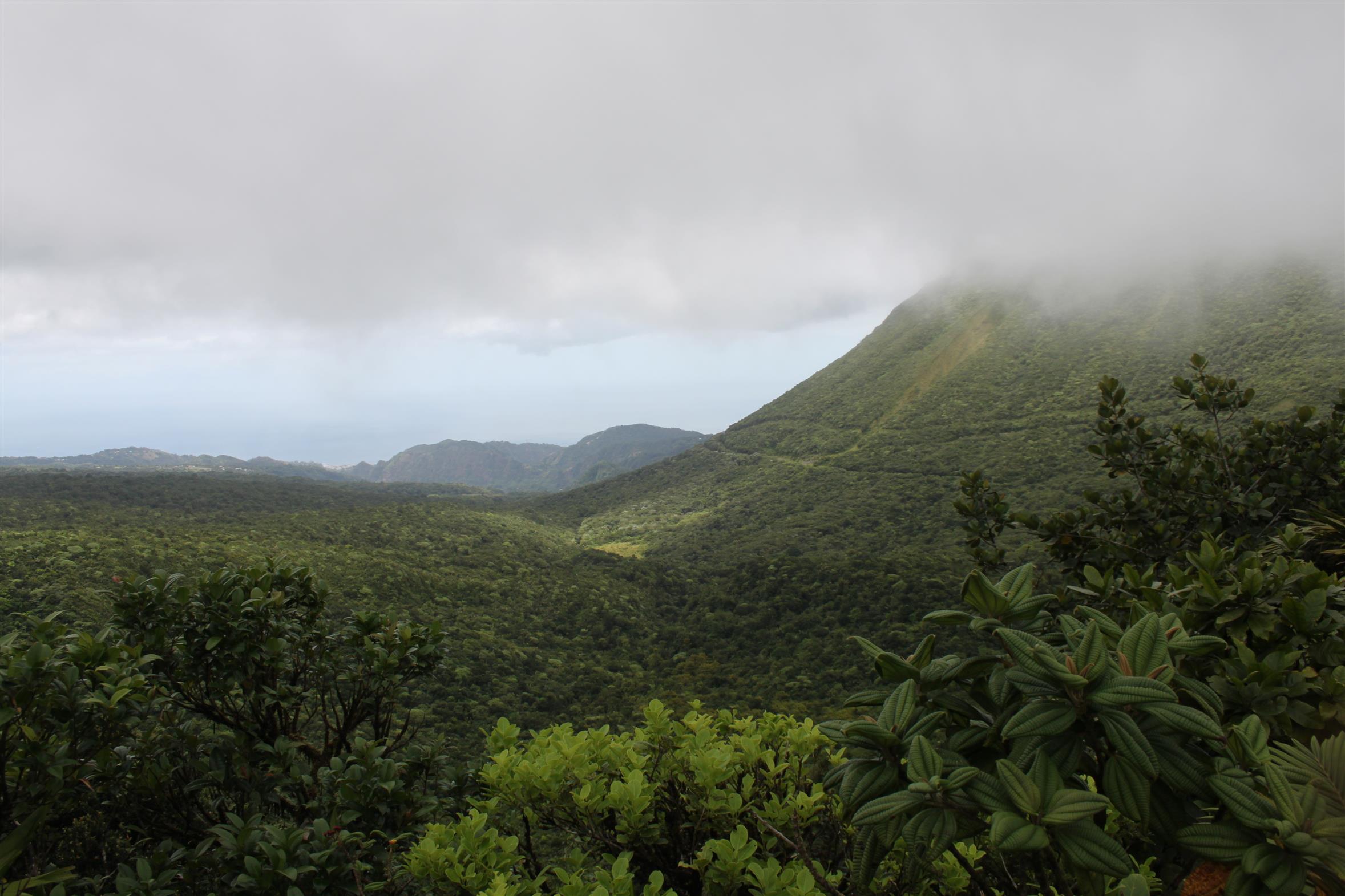 Celui-ci se trouve dans la vallée de Roseau, au cœur de la rainforest et dans un des coins les plus humides de Dominique. Il est donc régulièrement entouré de nuages, mais ce matin là nous n’avons pas de chance: il était complètement dans la brume!