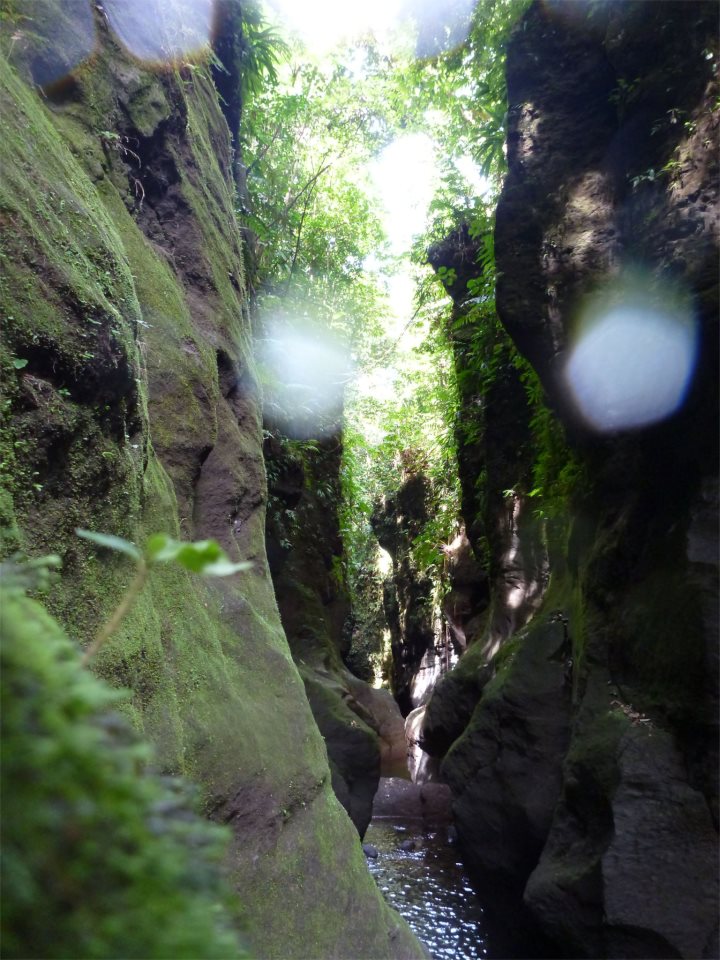 Une des nombreuses activités nature que nous avons pu apprécier en Dominique est le canyoning. Pour ceux qui ne connaissent pas, le canyonning c’est « une activité qui consiste à parcourir un cours d’eau accidenté ou encaissé, en randonnée, à la nage et en rappel sur corde ». Nous avons rencontré ici Nathalie, une française guide de canyoning et spéléo. C’est une ardéchoise qui passe printemps et été dans les gorges de l’Ardèche et automne-hiver en Dominique: le bon plan!