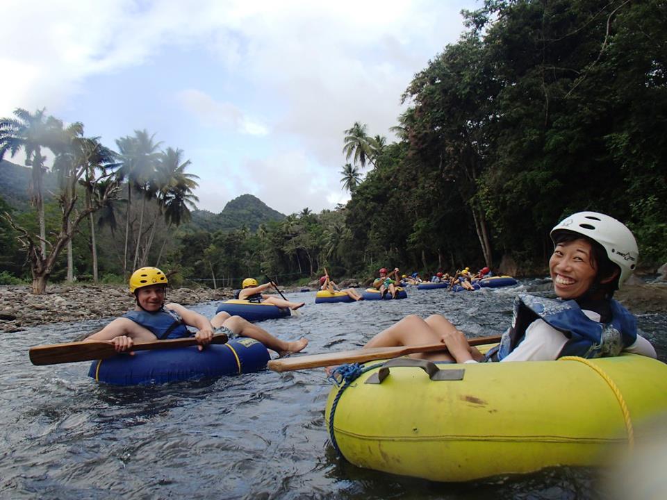 Après ça, nous nous sommes détendus pendant environ une heure en descendant la rivière d’à côté (Layou river) sur des bouées: