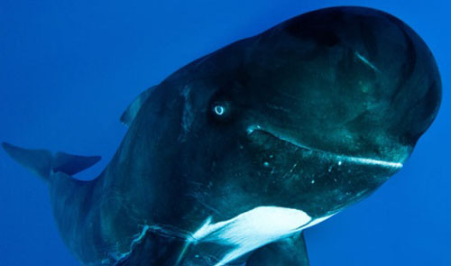 Alors voilà à quoi ressemble une baleine-pilote, vue en face: