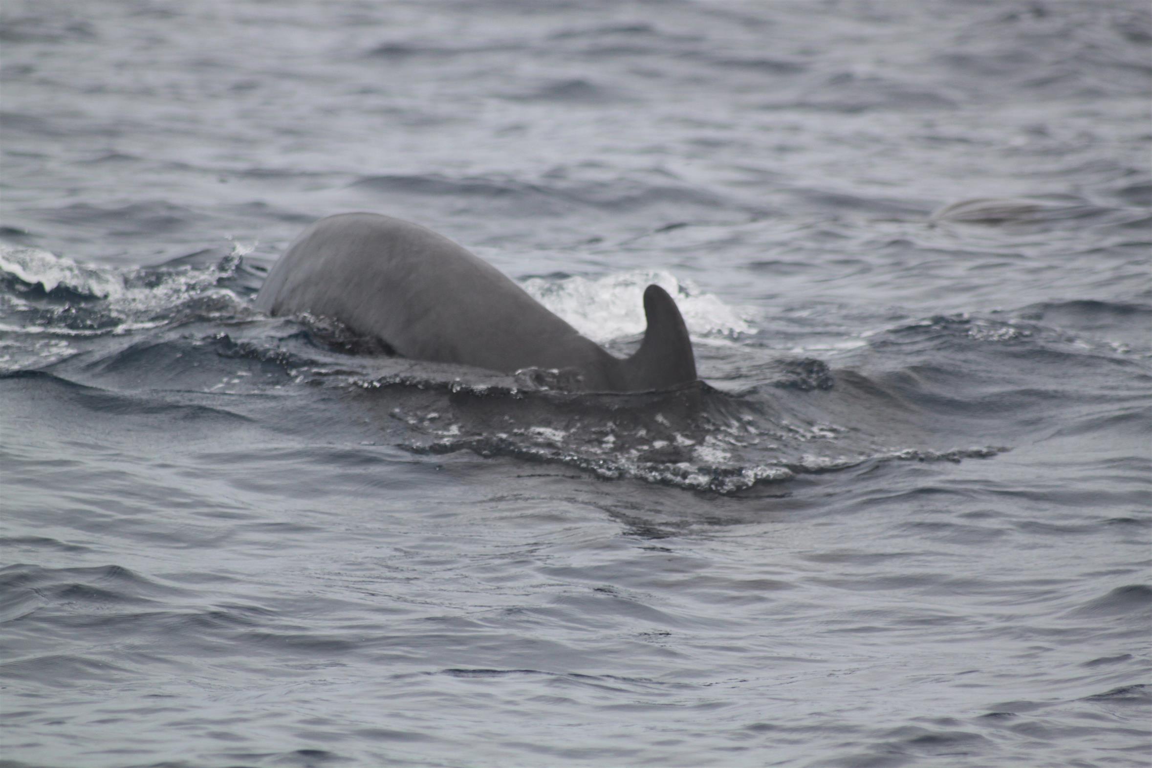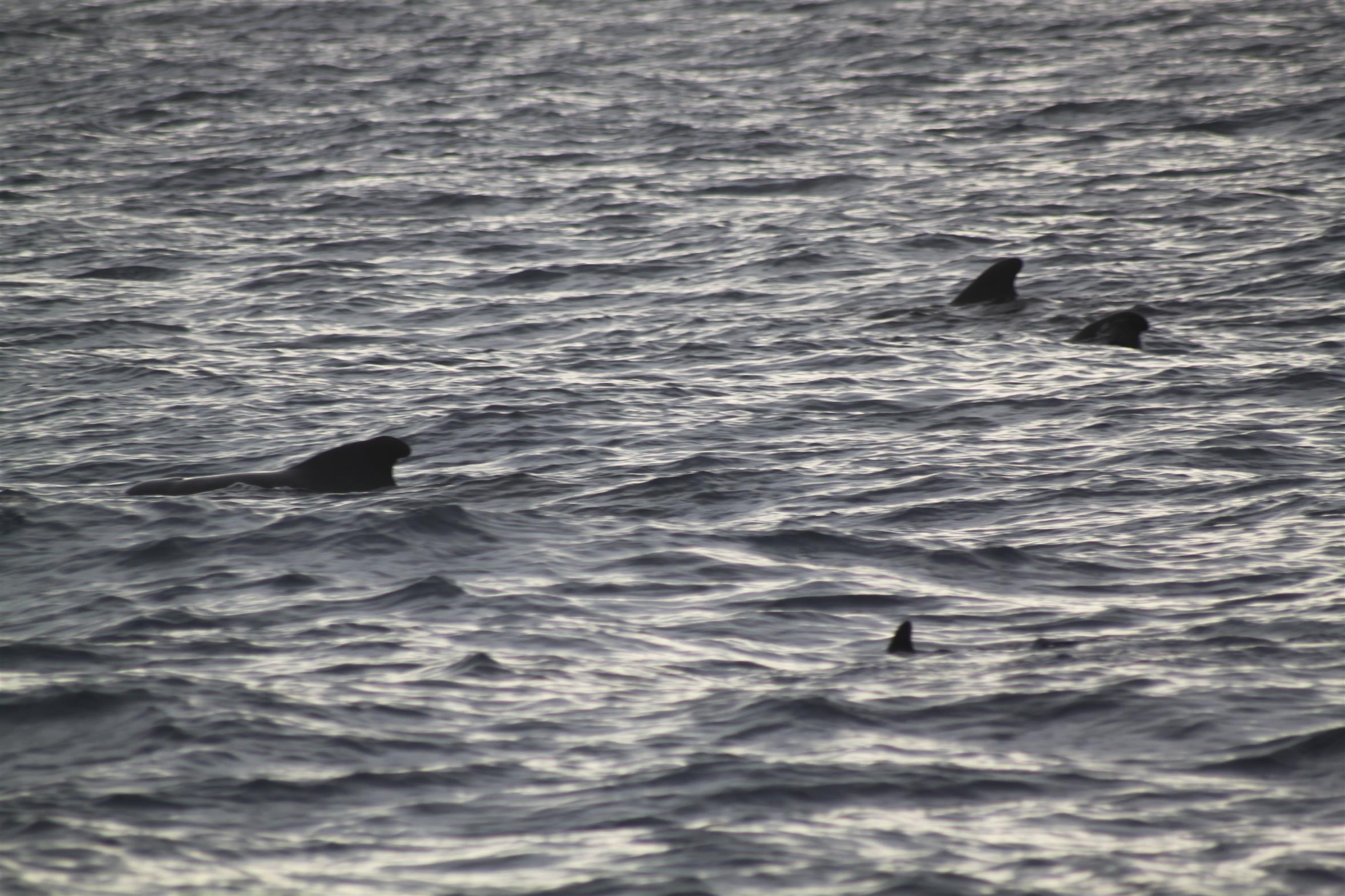 Les baleines-pilotes (ou globicéphale tropical) sont très sociables, on les rencontre généralement par groupes de 10 à 50. Elles mesurent entre 5 et 7 mètres de longueur.