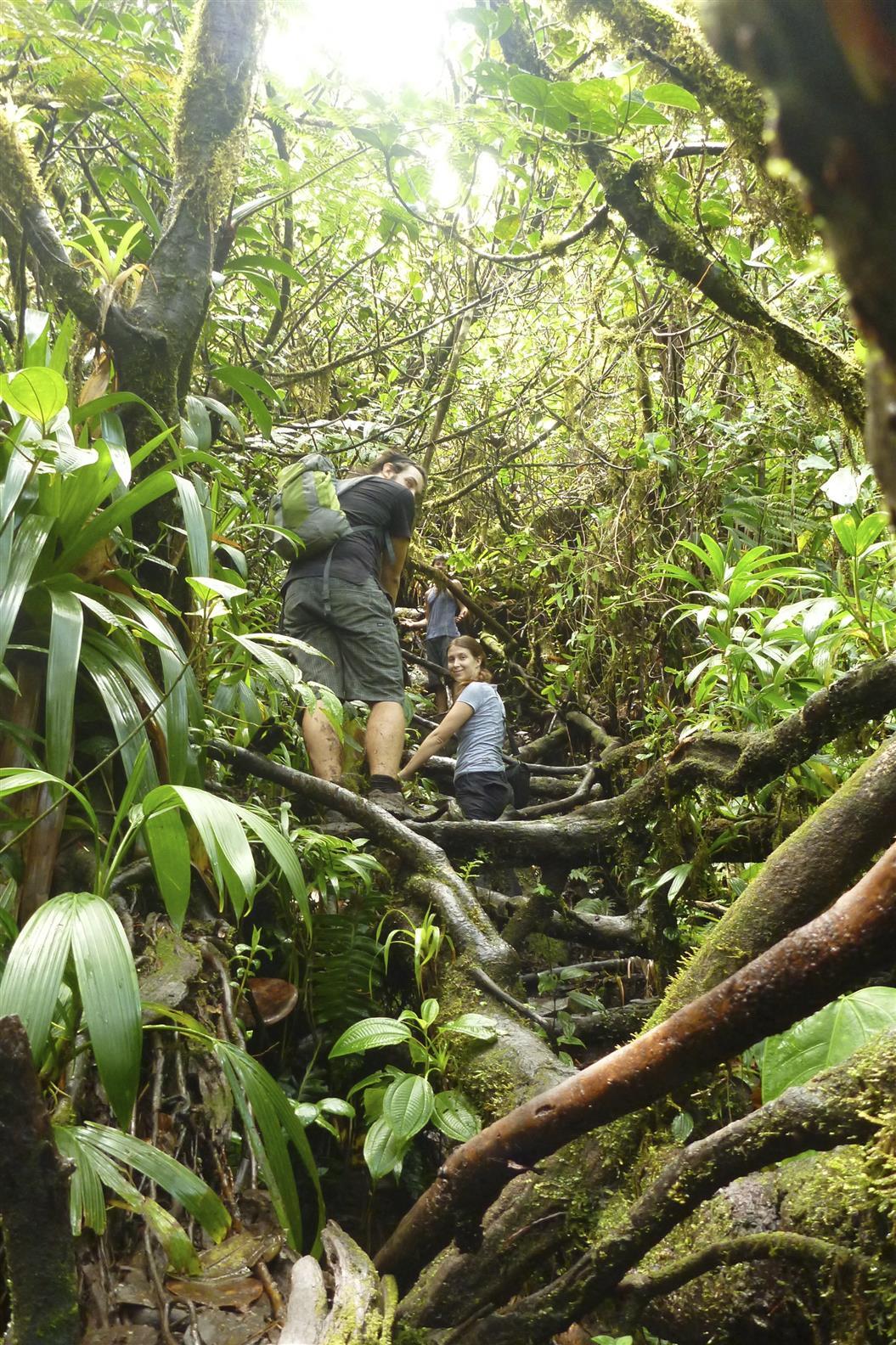 Nous changeons ensuite rapidement d’environnement pour arriver à la partie marrante, le « Jungle Gym »: nous devons escalader la montagnes en prenant appui sur les arbres. Racines et branches sont tellement entremêlées qu’il est difficile de faire la différence!