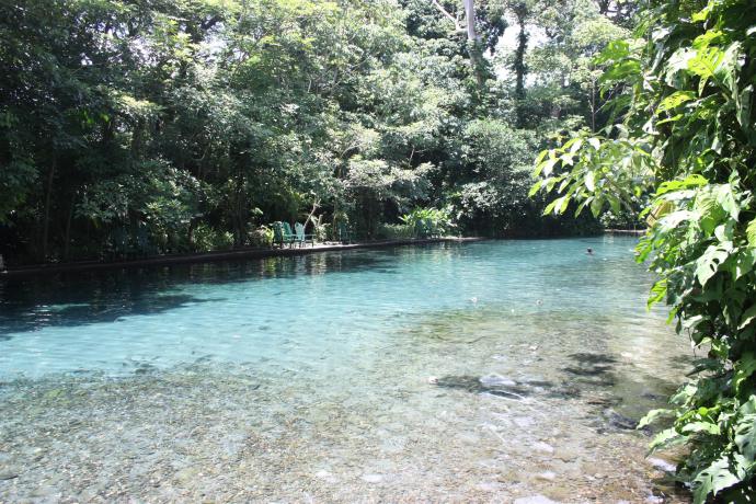 Après une première après-midi de repérage des environs, nous sommes allés dans une piscine d’eau de source au beau milieu de la forêt. L’endroit était magique : de l’eau transparente, un cadre superbe, des singes hurleurs pour nous tenir compagnie. Nous avons passé un très très bon moment.