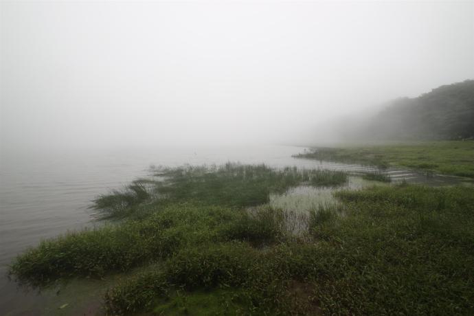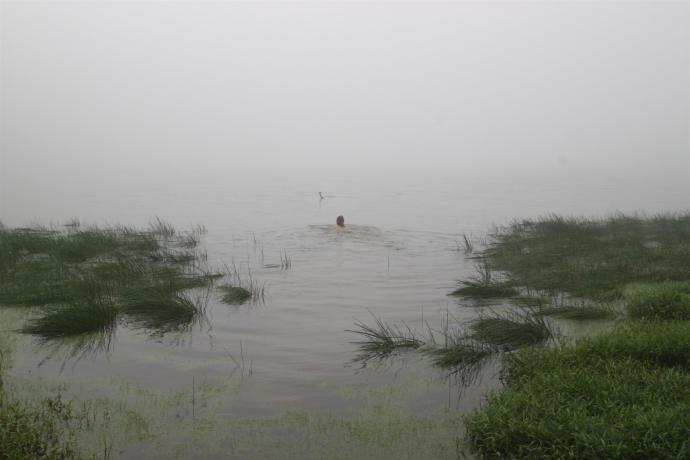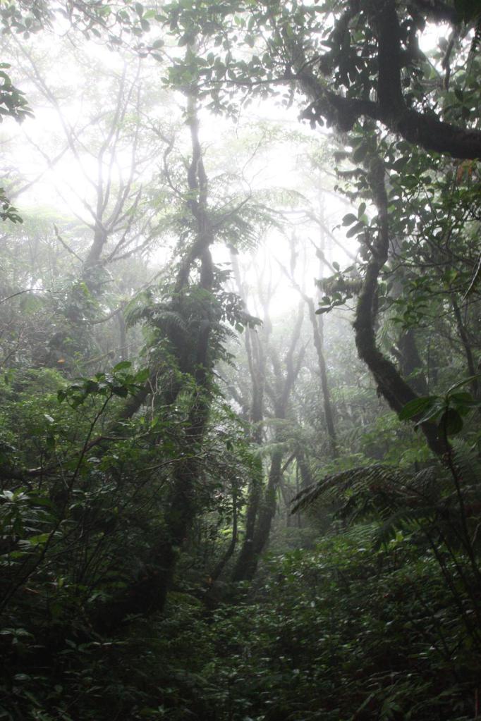 Je tiens à remercier le guide Lonely Planet qui présentait la randonnée comme une randonnée facile d’environ 6-8h qui a été validée par, je cite, « des marcheurs fumeurs non entrainés et en sur-poids ». Un sacré gros bobard! La randonnée nous a pris 10h, essentiellement dans la boue et elle était loin d’être facile! En plus, nous étions censés avoir une vue magnifique sur l’autre volcan et l’île mais nous étions entièrement dans les nuages ce jour là, donc raté… Heureusement, une fois arrivés au sommet, nous avons atteint un lac et avec la brume, cela donnait une atmosphère très mystique! Seule Carole a osé se baigner.