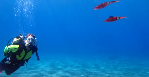 Et un gros banc de seiches (environ une trentaine de seiches, elles se déplacent en ligne et c’est assez marrant à voir):