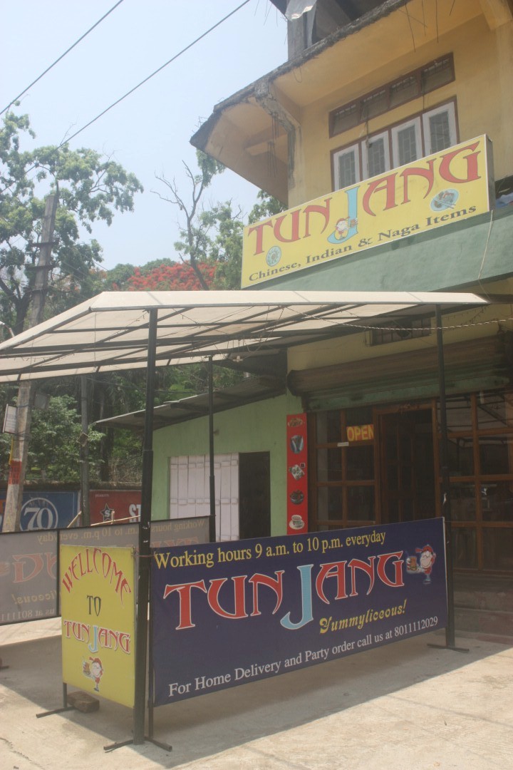 Tunjang est un petit restaurant à côté de chez moi qui propose des spécialités indiennes, chinoises et nagas. Dominique, un des cuisiniers, a un père tibétain et une mère naga (du nagaland, un des 7 états du Nord-Est). Comme beaucoup de nagas il est chrétien (d’où son prénom).