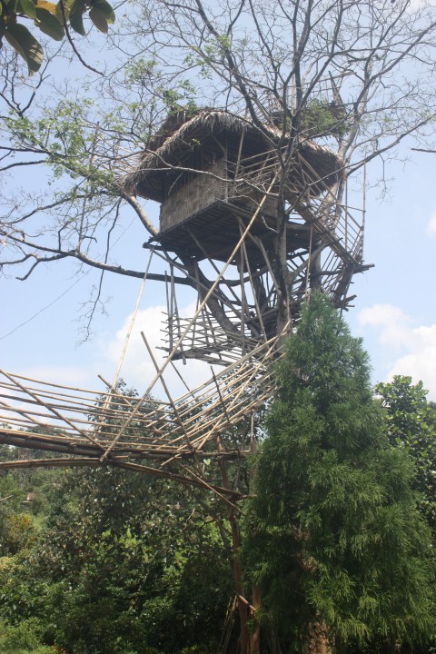 A l’entrée de Mawlynnong, les villageois ont construit une sorte de cabane dans un arbre:
