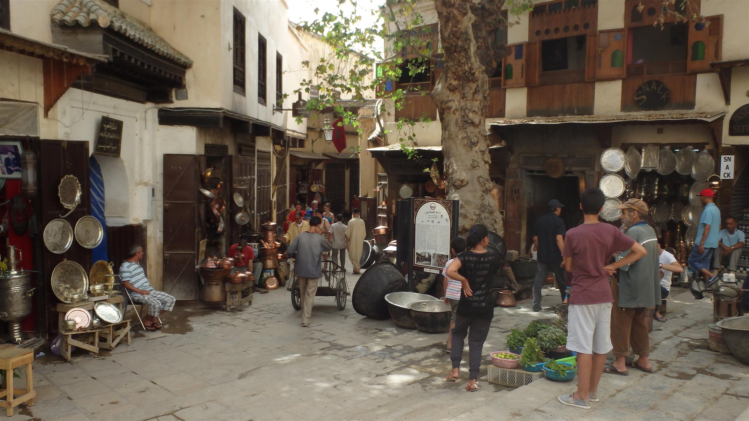 Les quartiers de la médina sont formés par les échoppes de différents corps de métiers. Ici le quartier des artisans du cuivre: