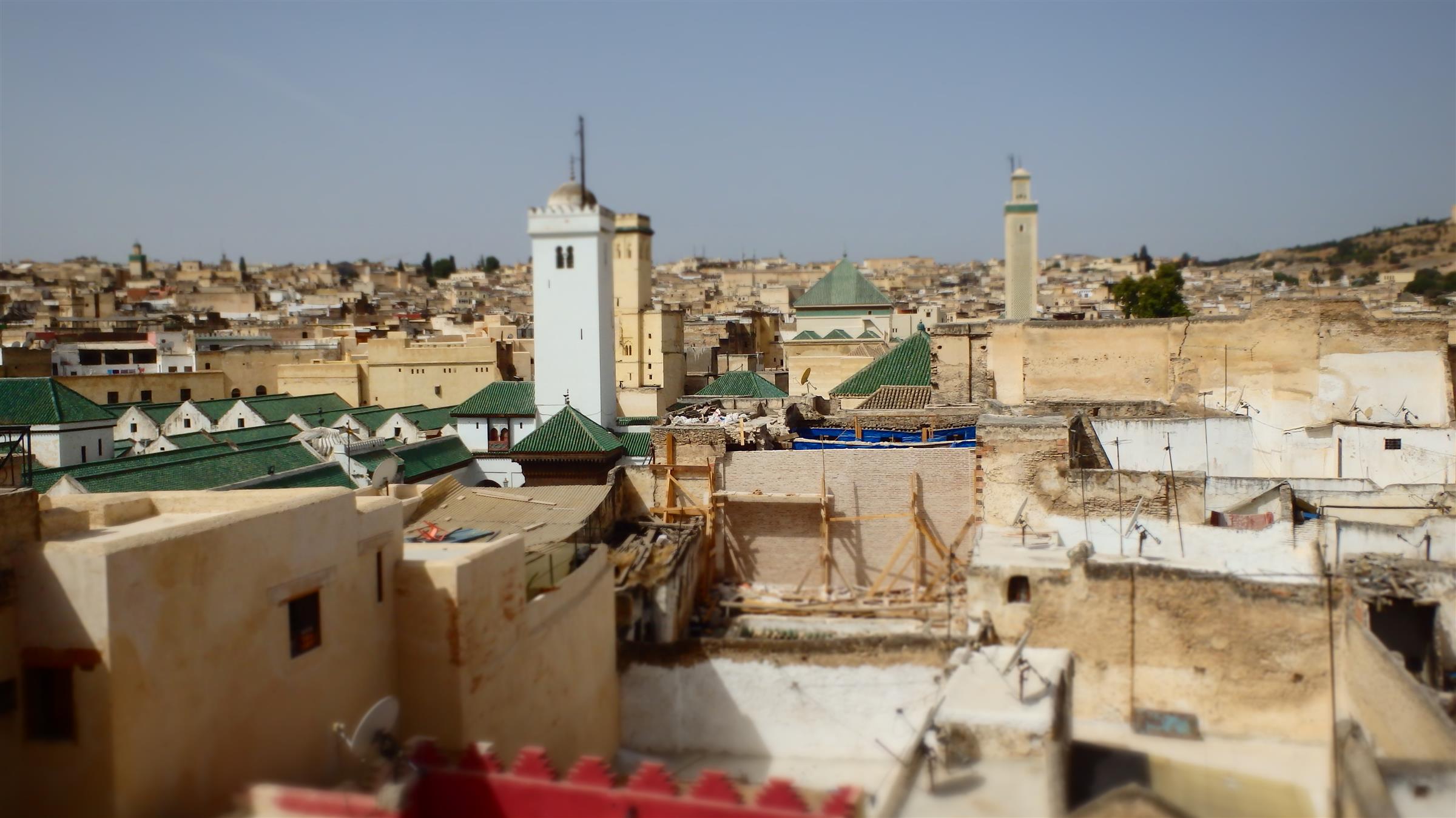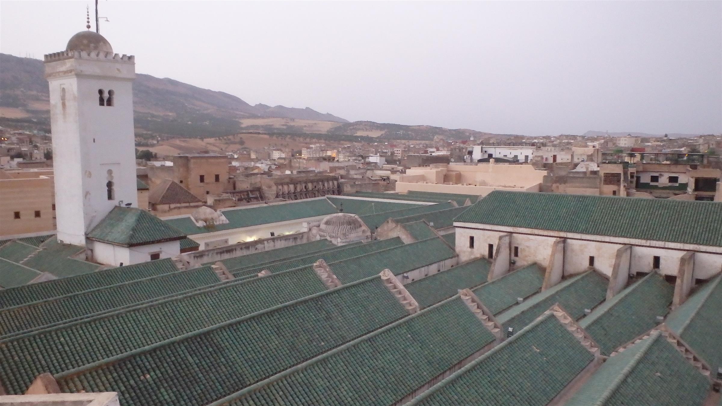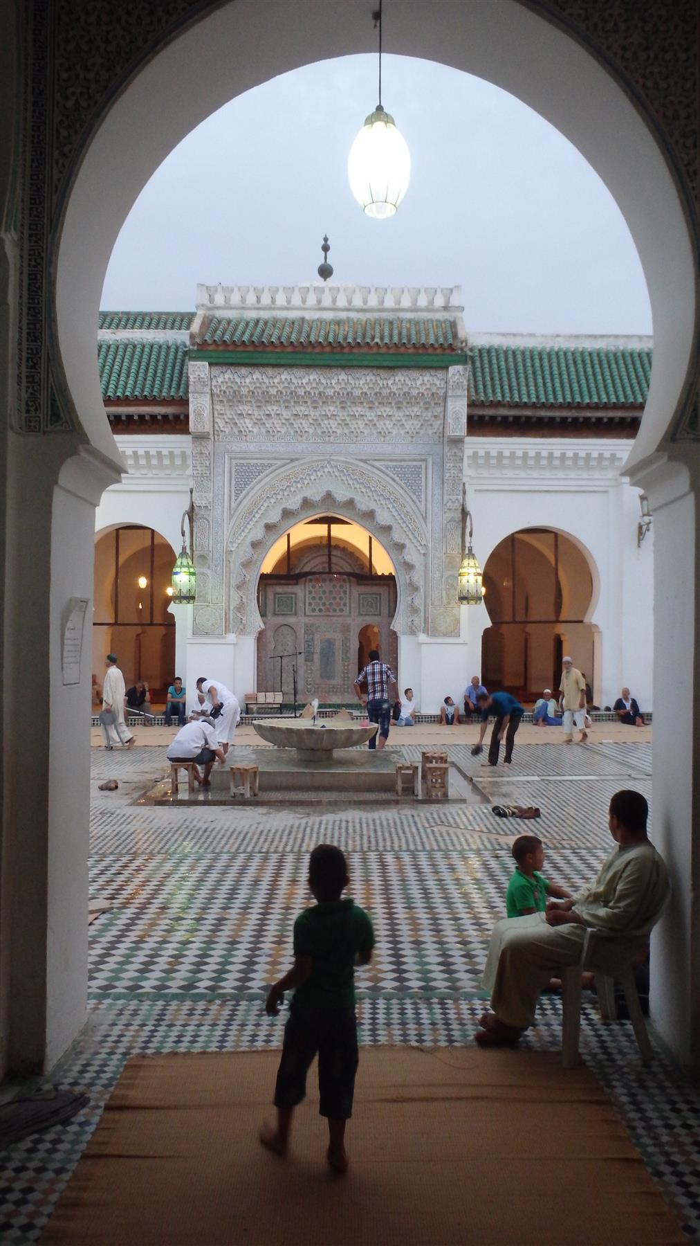 Au cœur de Fès, on trouve le bâtiment le plus emblématique de laville: la mosquée et l’université de karaouine. Cette université, qui est peut-être la plus anceinne du monde (édifiée en 859), est le premier centre d’enseignement musulman du monde après Al-Azhar, au Caire. La mosquée peut accueillir 20 000 fidèles, elle est tellement vaste qu’en pratique on peut difficilement la voir depuis le sol: au fil des siècles les rues et les maisons du quartier ont fini par complétement entourer le bâtiment.