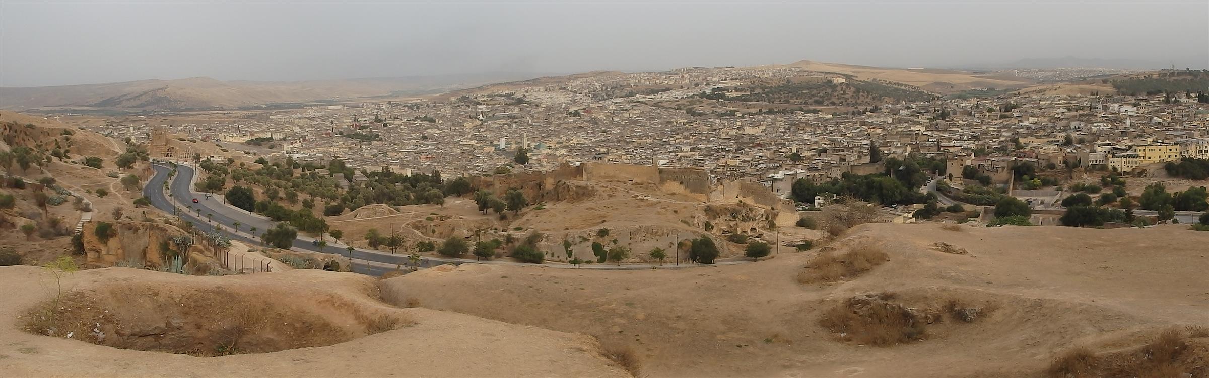 Pour se rendre compte de l’étendue de Fès, on peut monter jusqu’au tombeau des Mérinides (d’anciens souverains marocains), et admirer le panorama sur la ville: