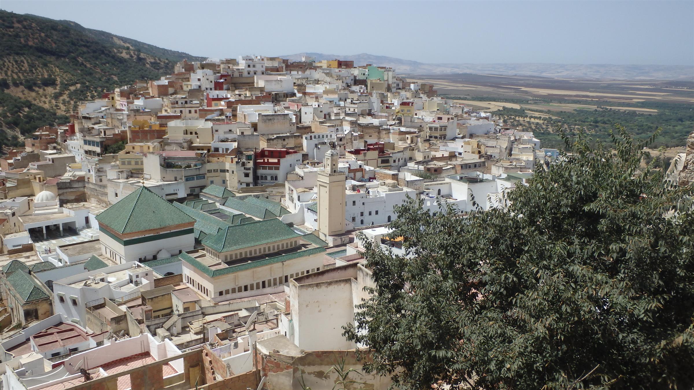 A quelques kilomètres de Volubilis, se trouve la ville de Moulay Idriss. C’est un des sites religieux les plus importants du Maroc. La ville doit son nom à Moulay Idriss, un arrière petit-fils du prophète Mahomet, fondateur de la dynastie marocaine des idrissides, et saint le plus vénéré du Pays. Moulay Idriss est enterré dans un mausolée, et sa visite constitue un important pèlerinage pour les croyants (apparemment, 5 pélerinages à Moulay Idriss = 1 pélerinage à la Mecque. Pratique.)