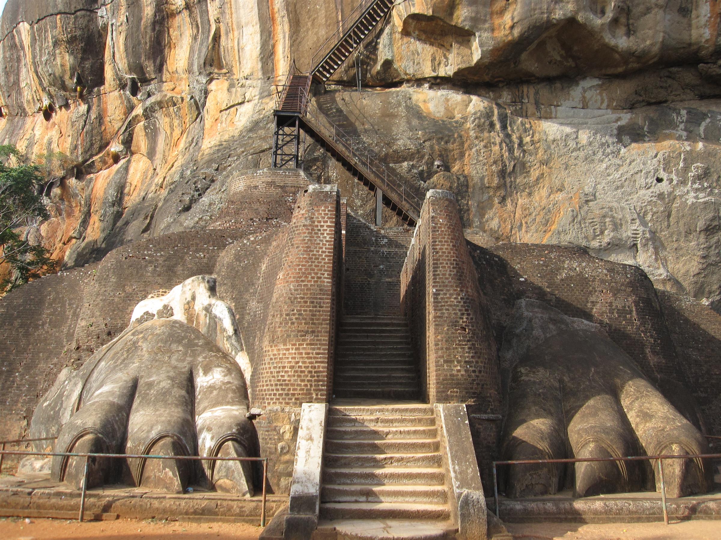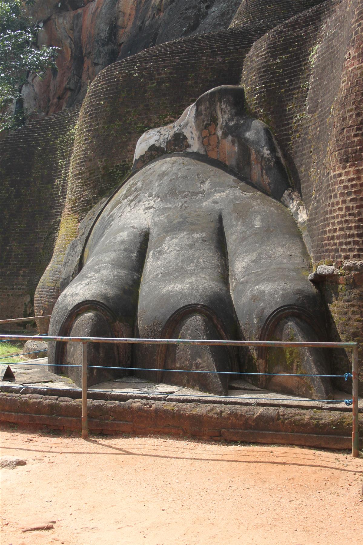 Puis on arrive à la première plate-forme, où se trouve l’entrée du palais. Cette entrée était symbolisée par un immense lion, dont il ne subsiste que les pattes (Sigiriya signifie « le rocher du lion ») :