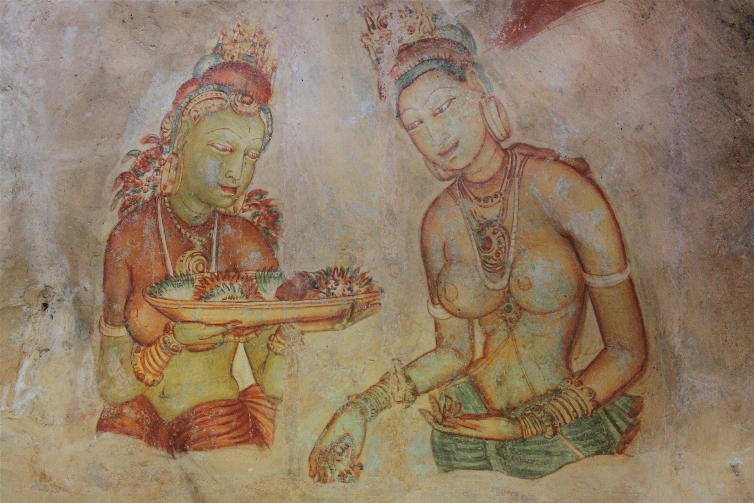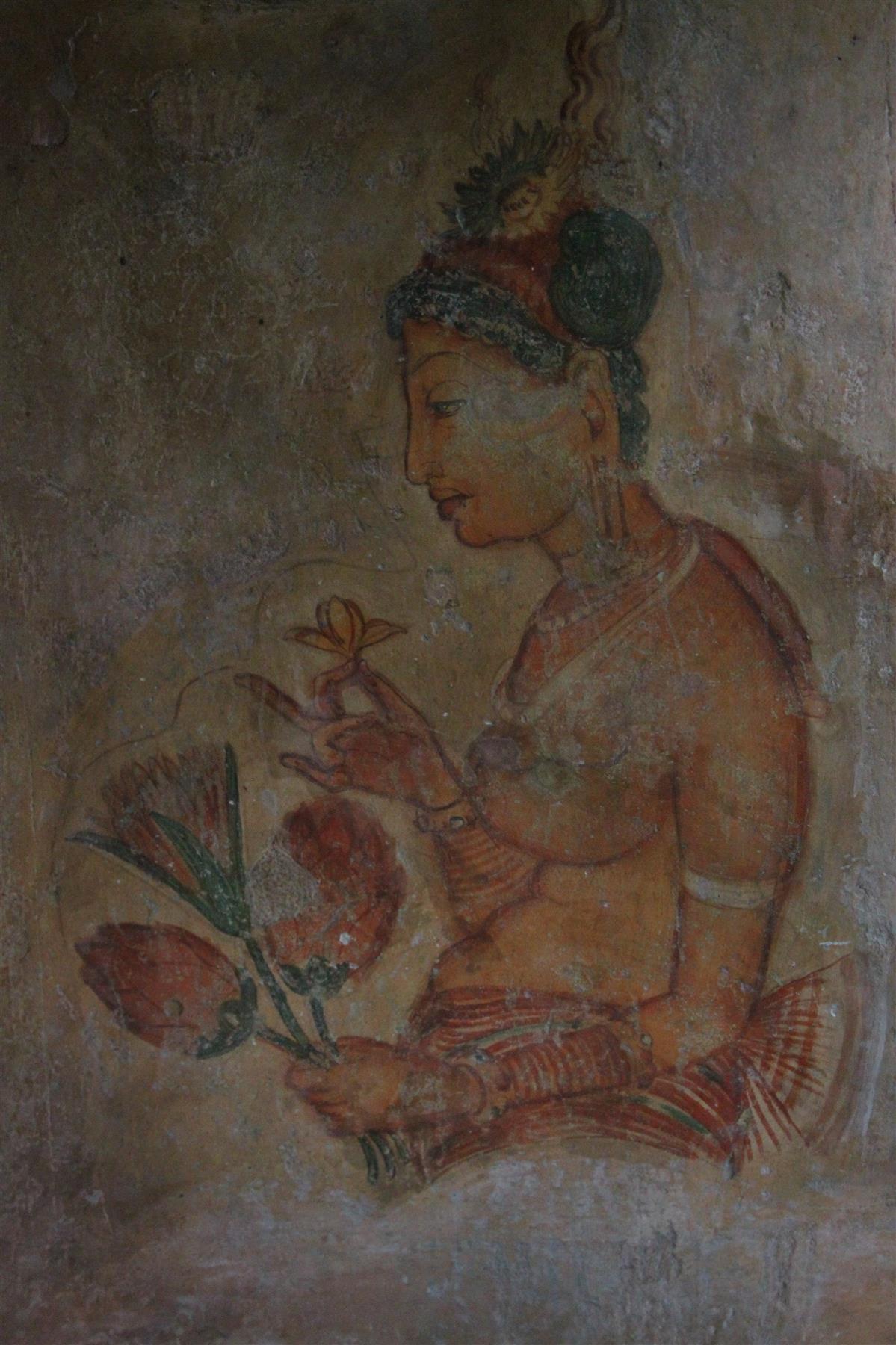 Nous arrivons ensuite aux fresques des Demoiselles de Sigiriya, qui sont très célèbres au Sri Lanka. Elles furent commandées par Kassyapa, grand amateur d’art (et de femmes, semble t-il) et représentent une vingtaine de femmes aux postures gracieuses:
