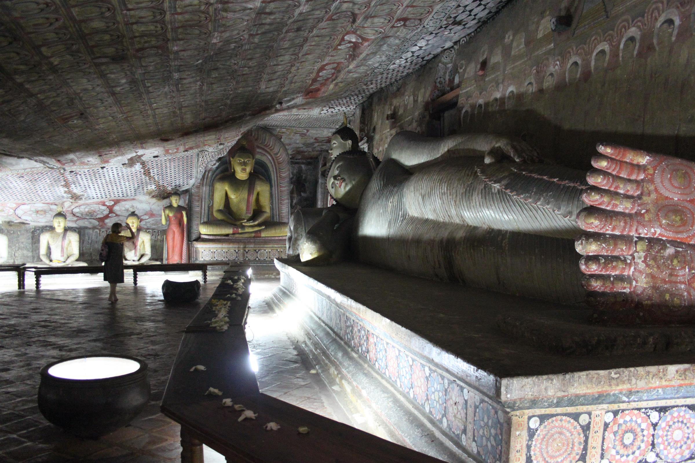 Après Sigiriya, nous avons également visité le Temple d’or de Dambulla, un autre site classé à l’Unesco. Il s’agit d’un monastère rupestre datant du 1er siècle avant JC contenant cinq sanctuaires, et devenu lieu saint du bouddhisme.