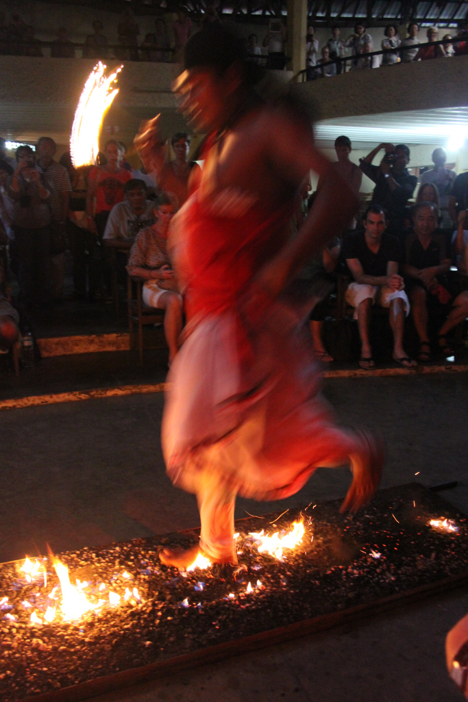 Après la visite du temple, nous sommes allés voir un spectacle de danses traditionnelles. Nous avons pu admirer les performances des danseurs et danseuses mais ce qui m’a le plus impressionné ce sont les deux danseurs qui ont marché sur des braises!