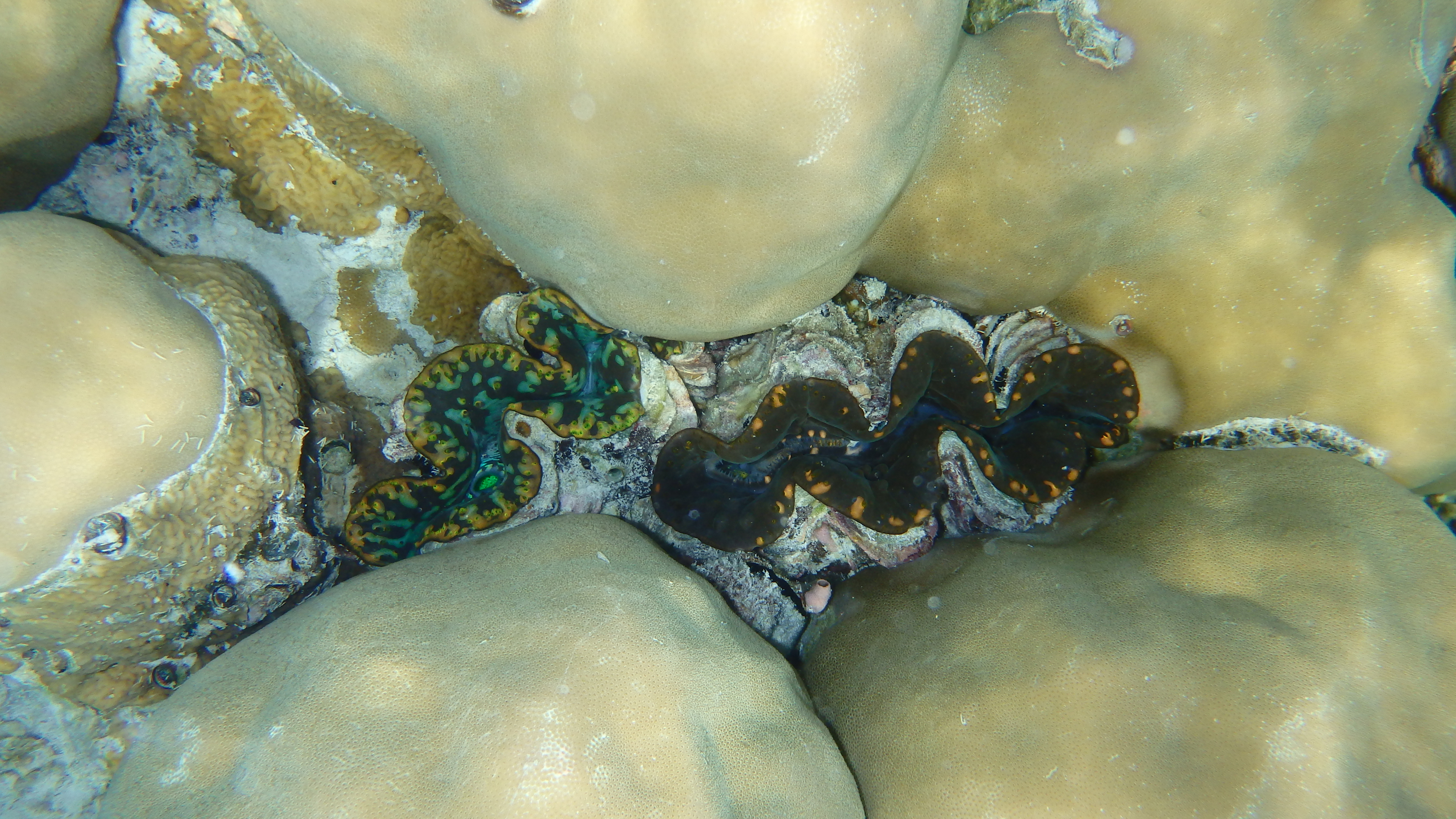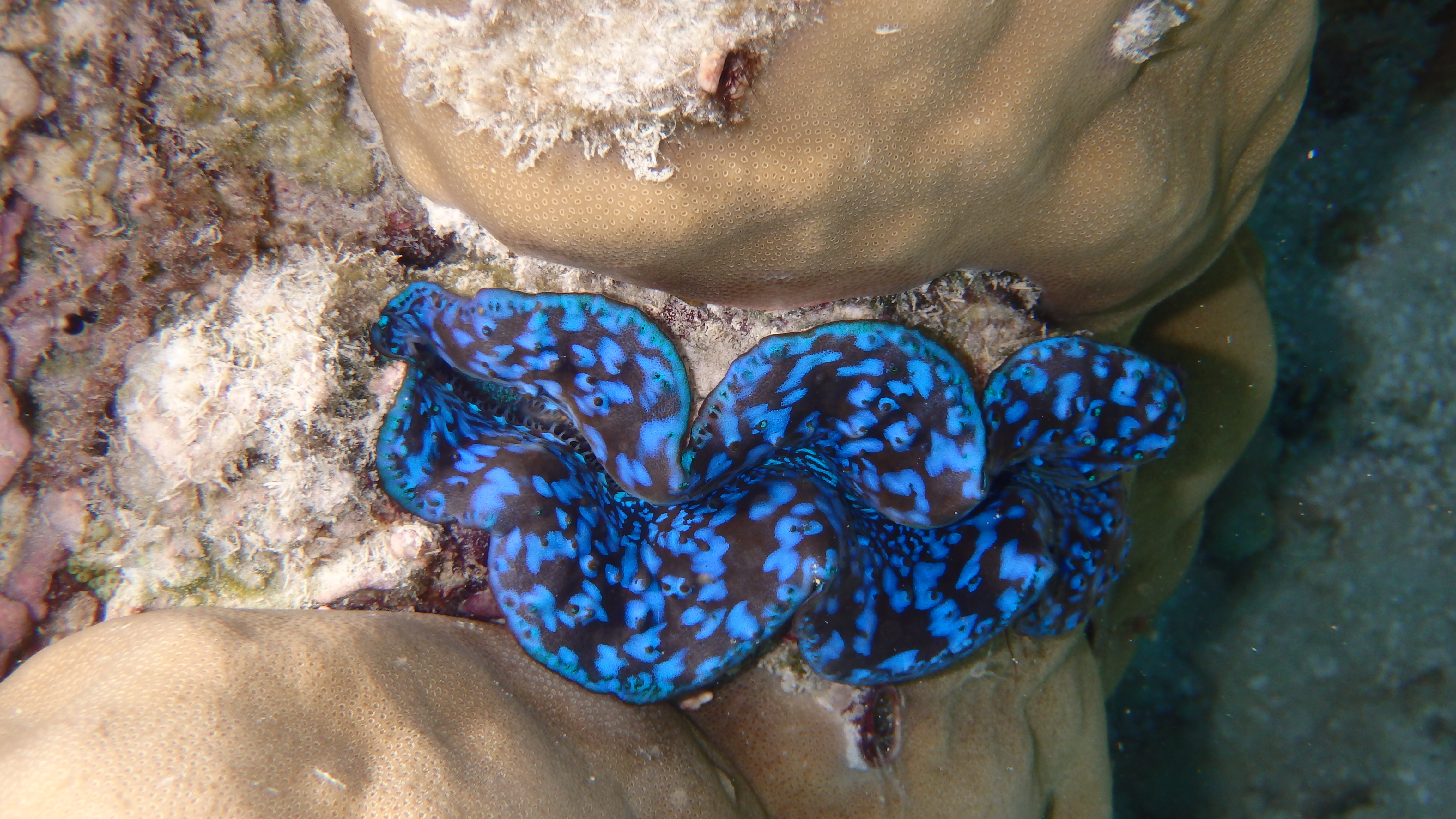 On trouve souvent des bénitiers des Maldives, très colorés (ils se referment dès qu’on s’approche):