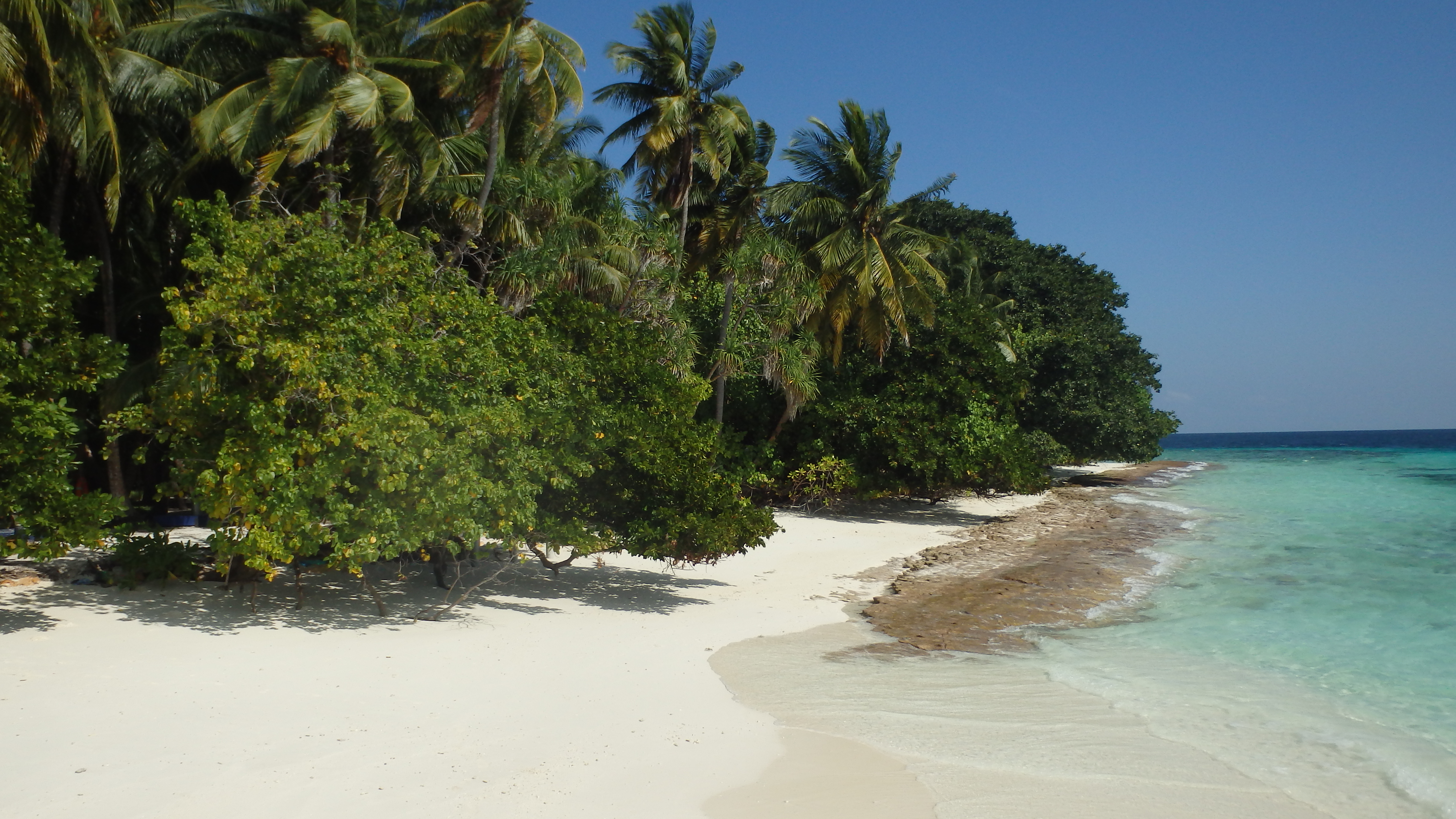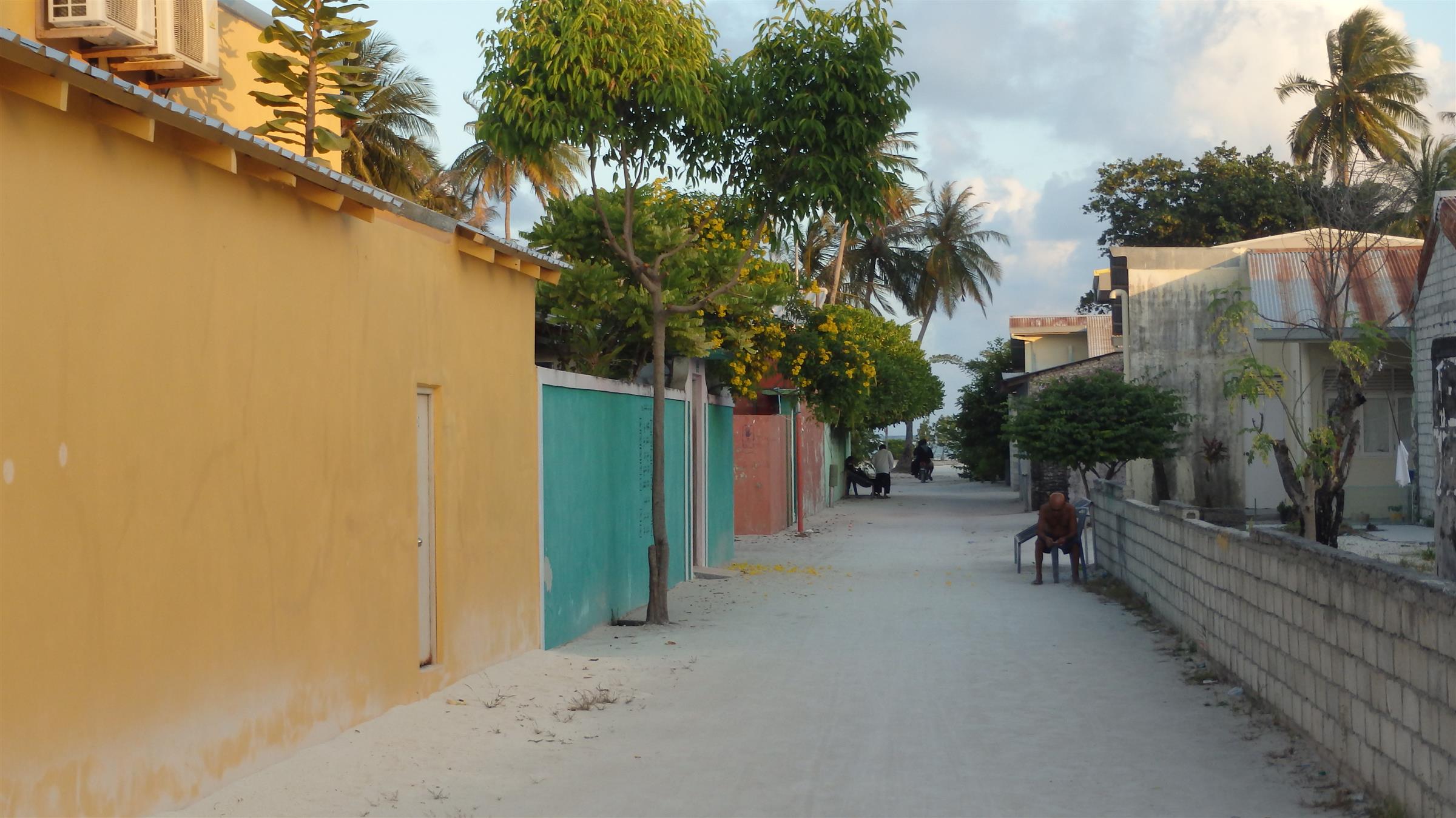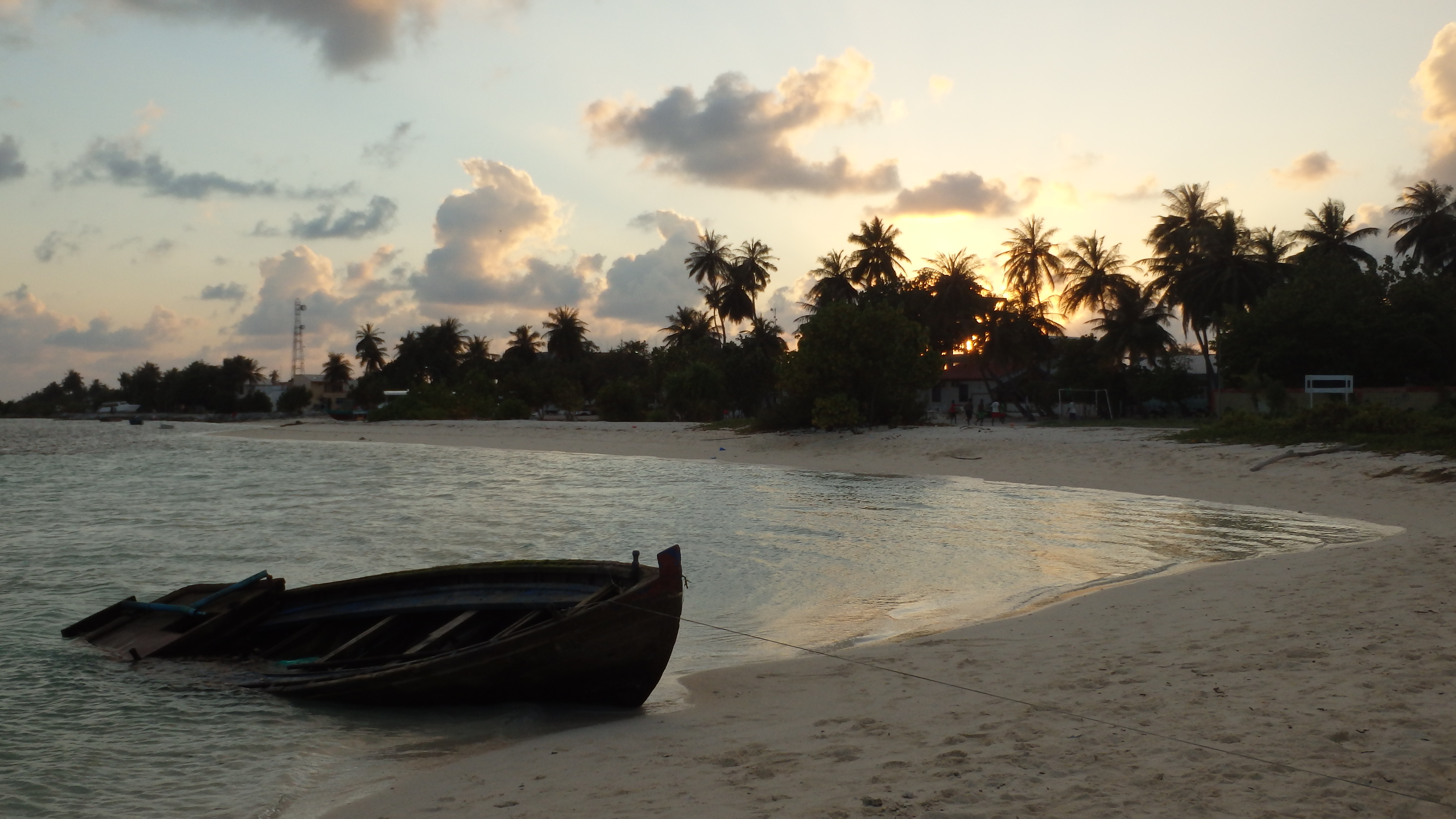 Nous arrivons sur l’île de Maafushi, une grande île pour les Maldives. Nous en faisons le tour en une grosse demi-heure (!)