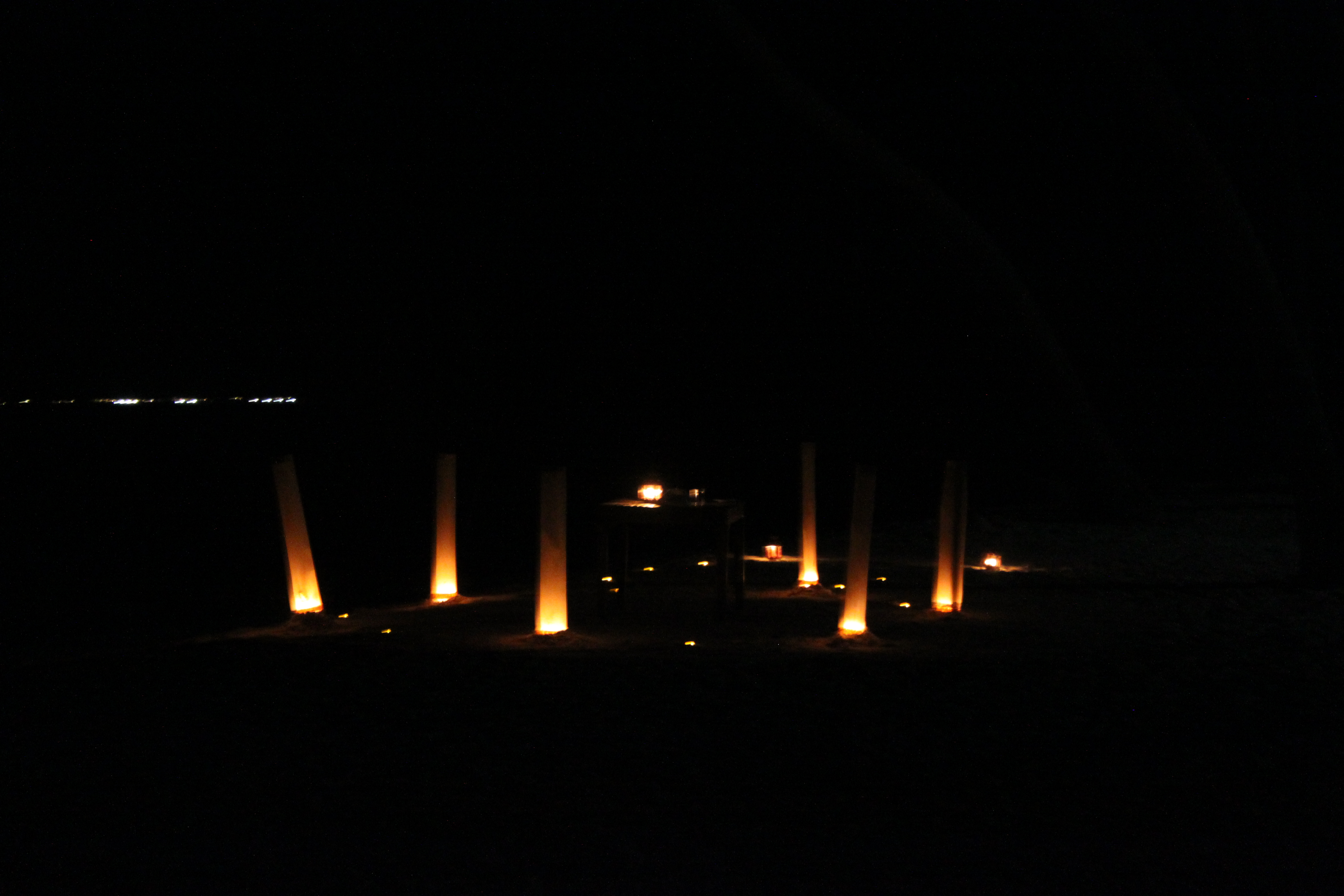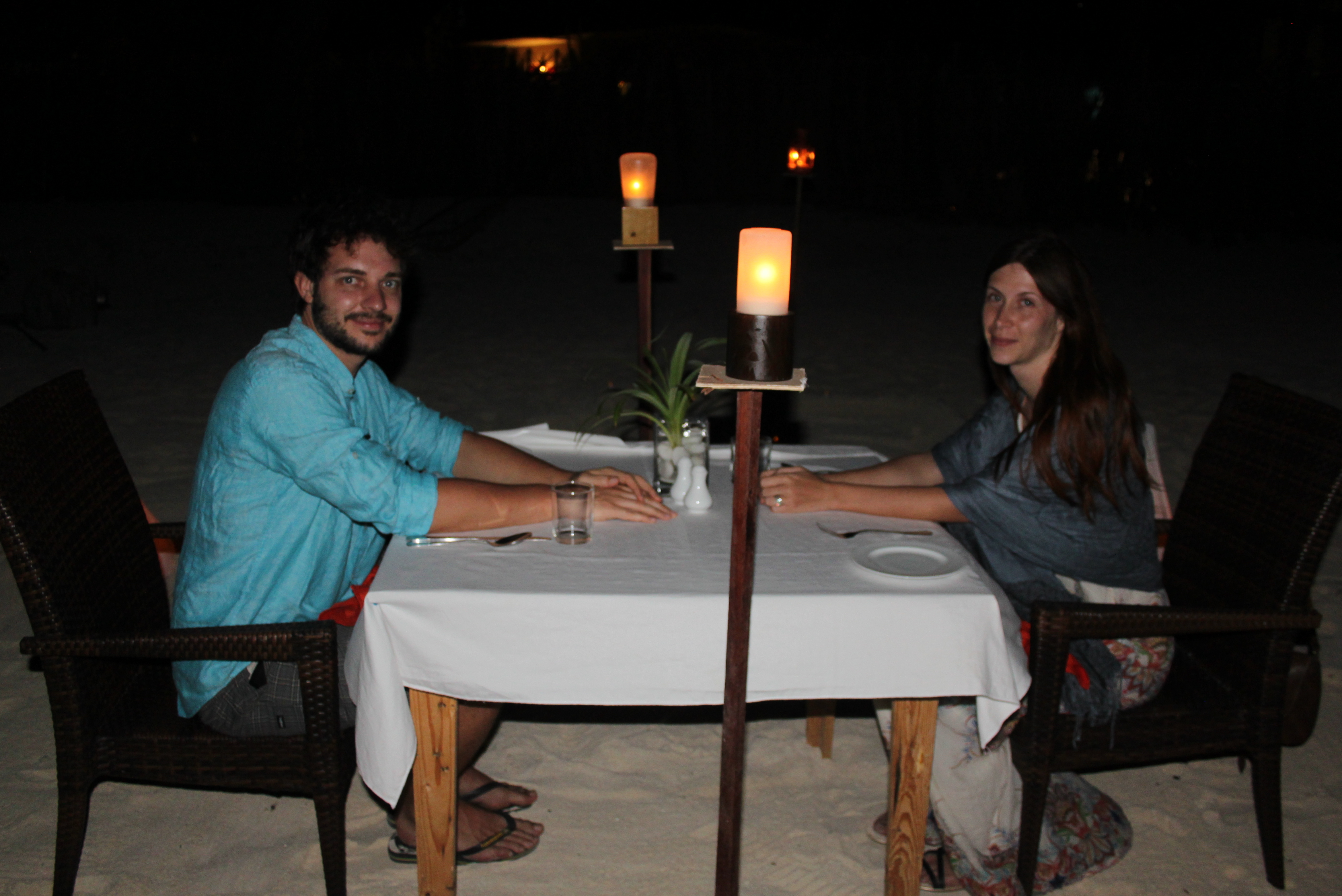 Nous nous sommes offert un petit repas aux chandelles sur la plage (allez c’est notre voyage de noce, on a le droit…)