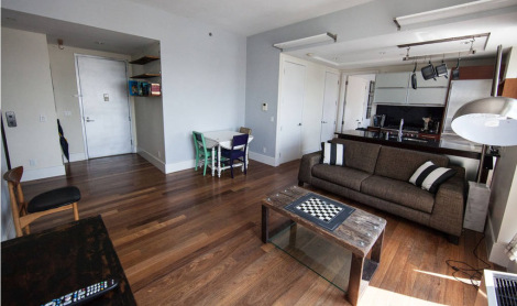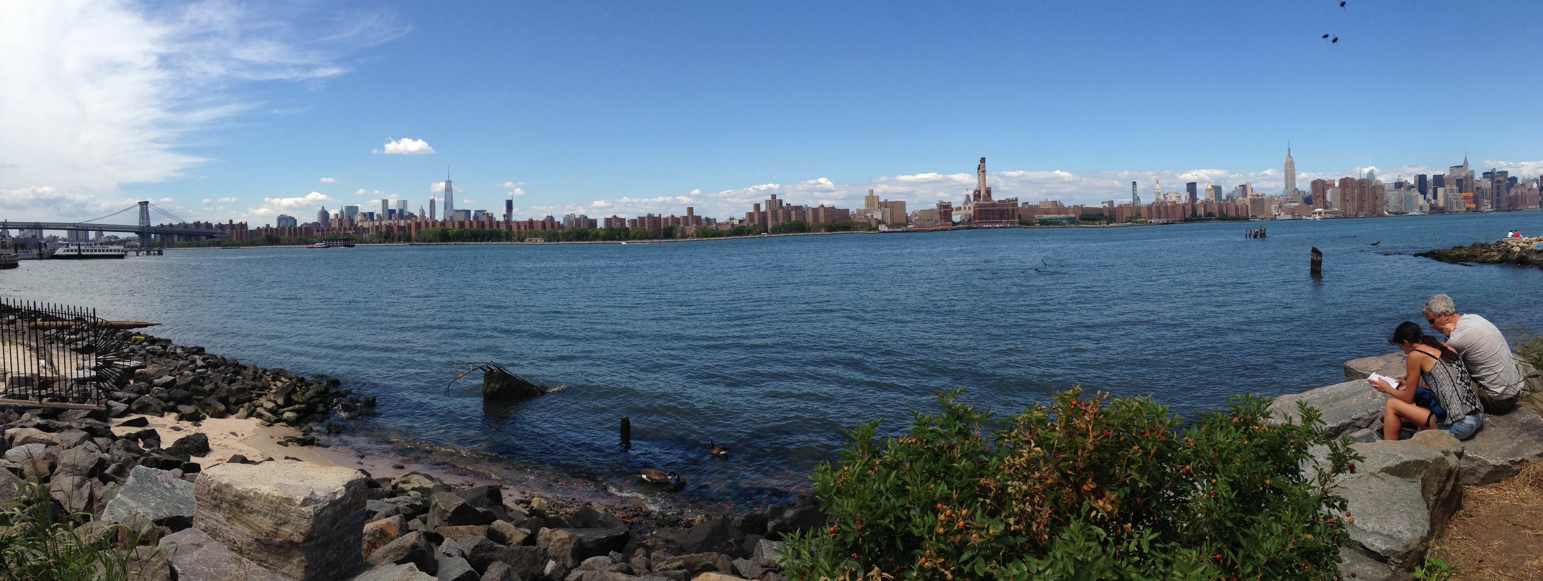 Notre logement est situé à Brooklyn, dans le quartier de Williamsburg, à 5 min à pied du travail de Gildas. Il y a un parc juste à côté, et l’immeuble a une très belle vue sur la skyline de Manhattan. Nous y sommes pour deux semaines, en attendant de trouver un logement définitif.