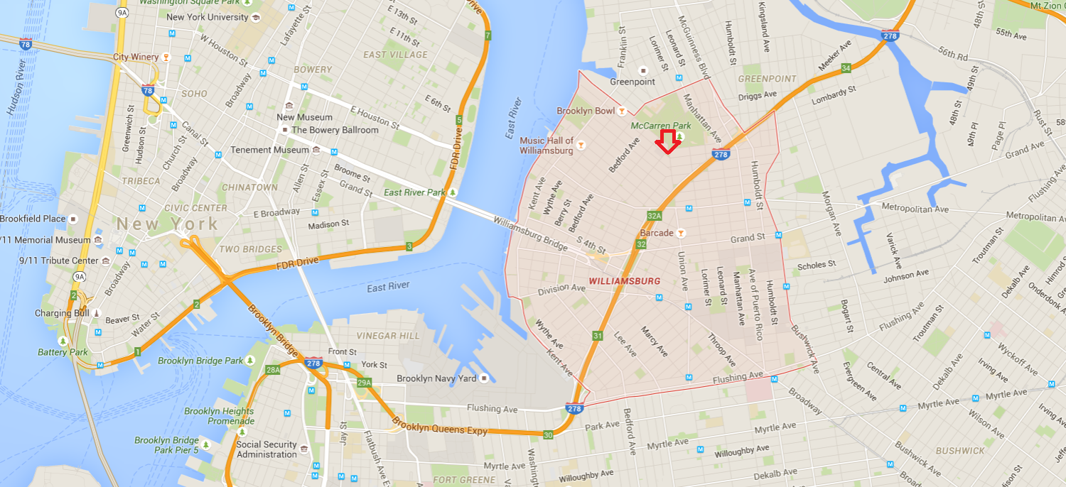 Après une nuit de sommeil réparateur et un réveil à 6h du matin (merci le décalage horaire), nous sommes partis explorer le quartier. Nous sommes donc dans Williamsburg, un quartier de Brooklyn, l’un des 5 boroughts de New York (voir ici pour un peu de géographie New Yorkaise).