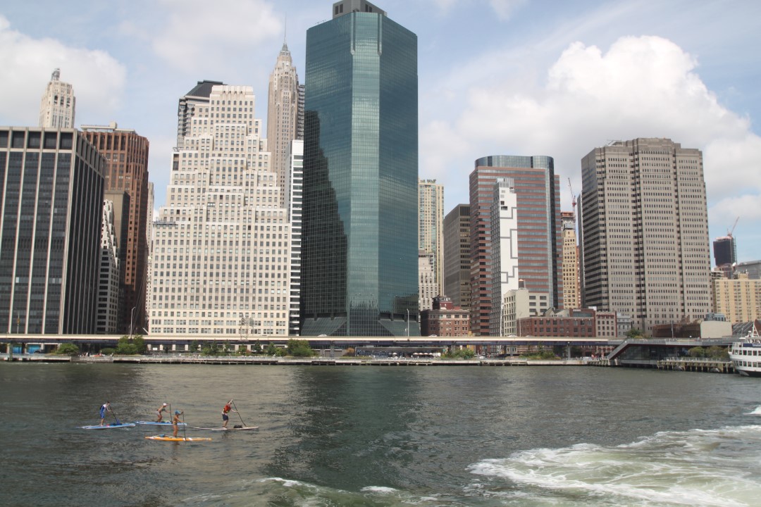 Nous sommes en plein dans les beaux jours à New York, et nous avons croisé toutes sortes de gens s’adonnant à des activités estivales, comme du jet ski ou encore ici, du stand up paddle: