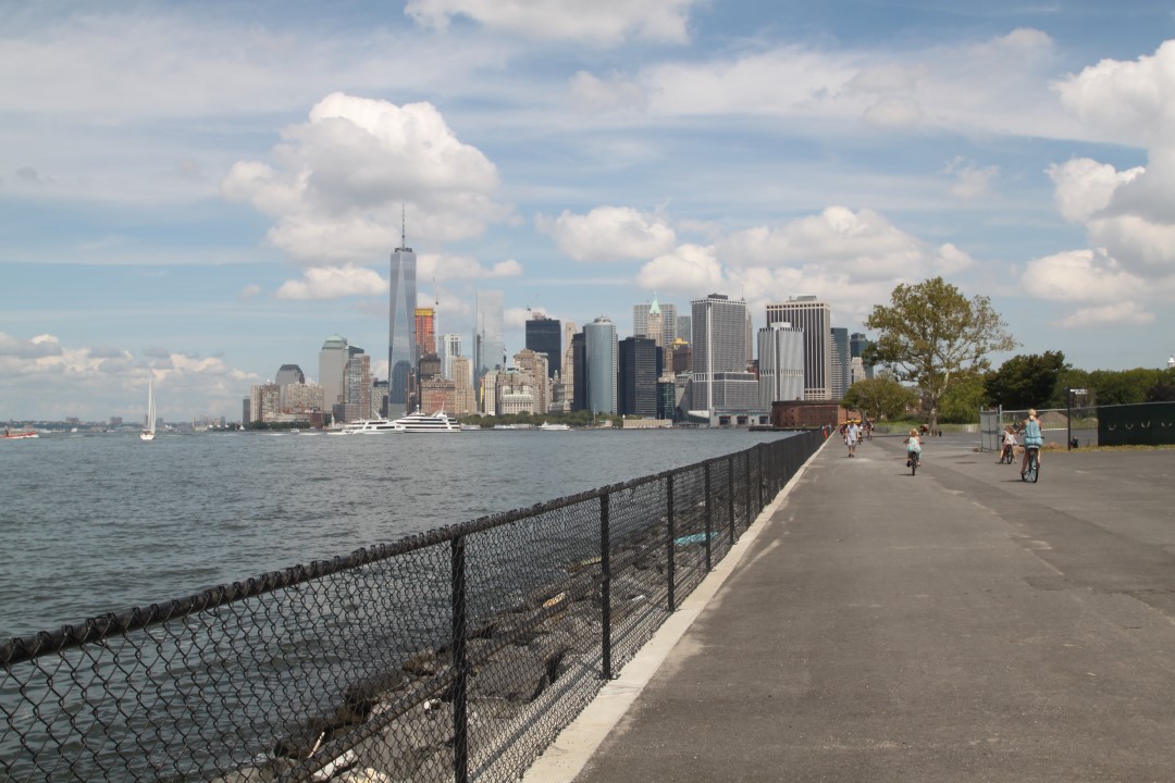 Et nous sommes arrivés à notre destination, Governors island. L’île est très proche de Liberty Island, et on peut voir la statue de la liberté juste sur sa droite: