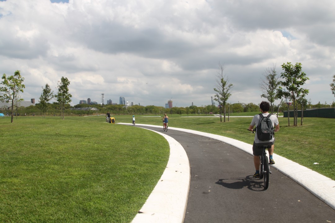 Il y a des pistes cyclables un peu partout, mais aussi des jeux pour les enfants, un parc entier avec des hamacs partout pour s’y reposer…