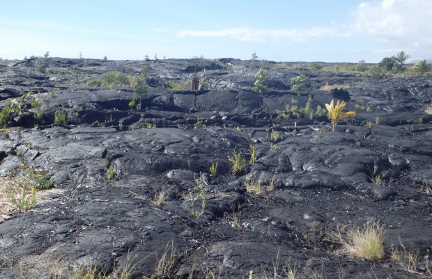 Ces coulées de lave n’ont pas seulement détruit la ville de Kanapana, mais aussi ce qui était, parait-il, la plus belle plage de sable noir de Big Island. Le sable a été quasiment entièrement recouvert de lave et à l’endroit ou la lave se jetait dans la mer, des mini-falaises se sont formées.