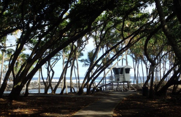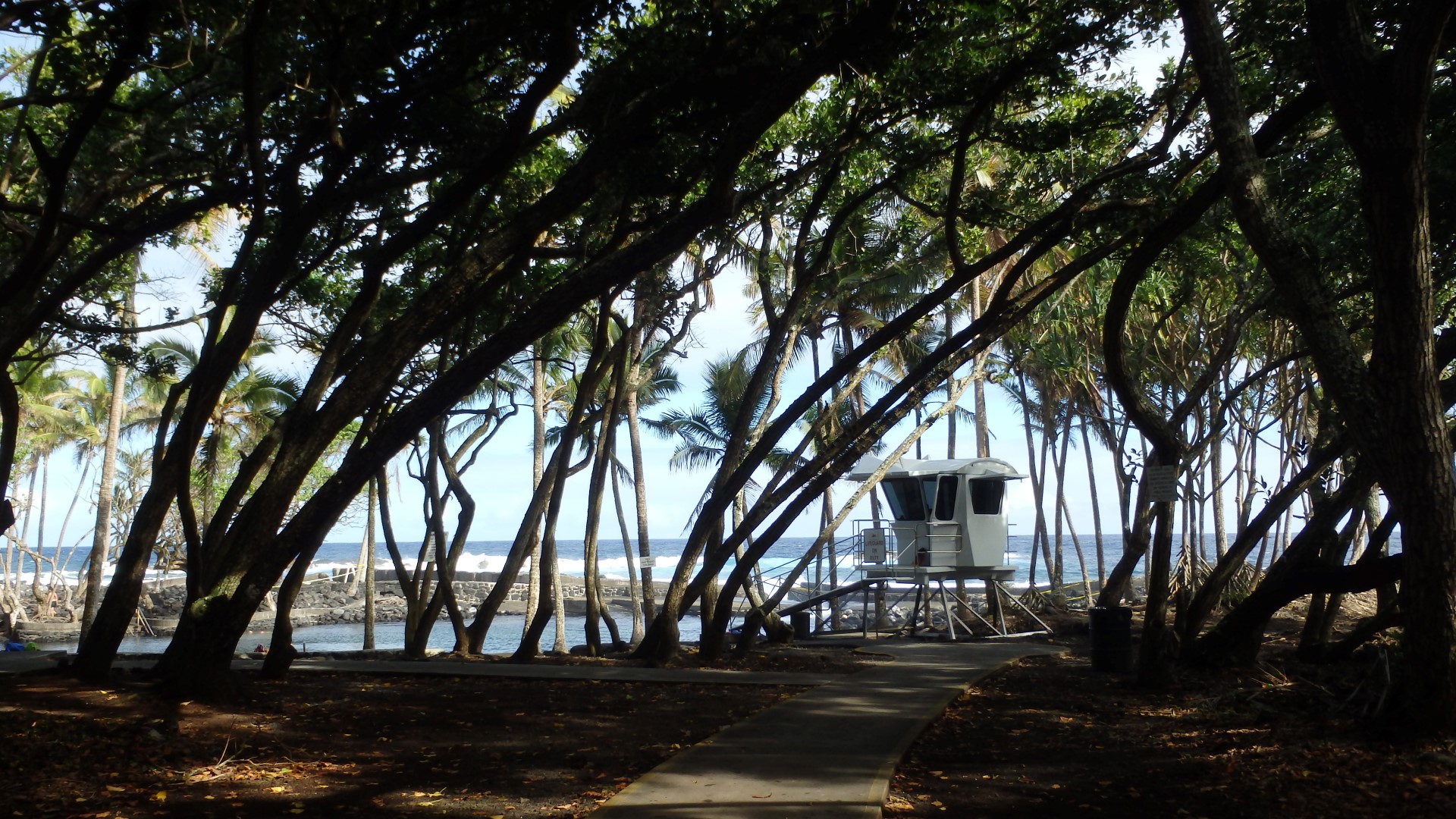 Après ces deux jours au sein du parc national des volcans, nous reprenons la route direction le Sud-Est de l’ile et plus précisément la région de Puna. Cette partie de l’ile est réputée pour être habitée principalement par des hippies! En arrivant dans la ville de Pahoa, on s’est vite rendu compte que l’atmosphère était légèrement différente. Les gens paraissaient beaucoup plus enclin à entamer la conversation, supermarché bio et boutiques new age ont pignon sur rue, etc. Mais, cette région est aussi intéressante pour d’autres choses : des sources d’eau chaude en bord de mer, le parc Lava Tree et de façon plus générale, la route 137 qui longe le littoral.