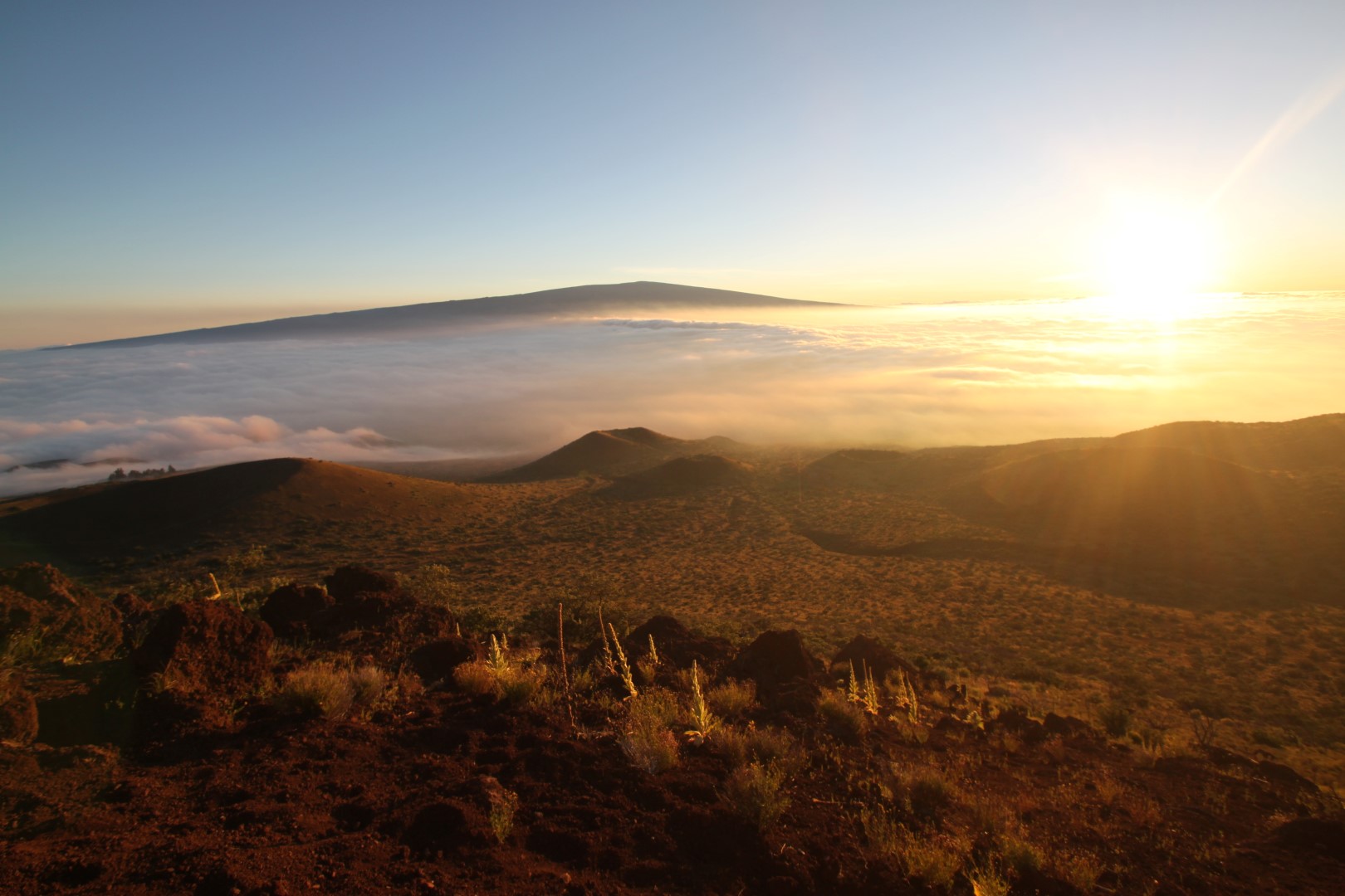 Le sommet du Mauna Kea est considéré comme le meilleur endroit au monde pour l’astronomie, car 1) comme on est au milieu du Pacifique il y a moins de pollution lumineuse qu’ailleurs 2) l’atmosphère y est sèche et sans turbulence 3) le sommet se trouve au-dessus des nuages quasiment toute l’année. On trouve donc au sommet 13 téléscopes parmi les plus perfectionnés du monde, partagés par onze pays.
