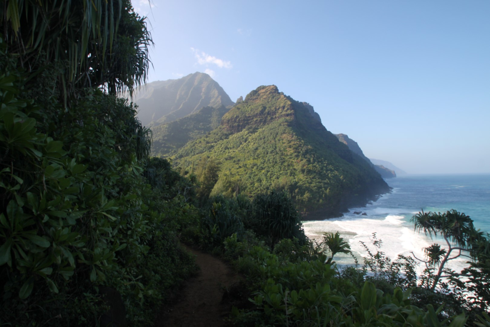 Le Kalalau trail a la réputation d’être dangereux, car il est quasi constamment en balcon le long de l’atlantique. Ca donne des vues extraordinaires, mais ca peut être dangereux lorsque le chemin est rendu glissant par la pluie: