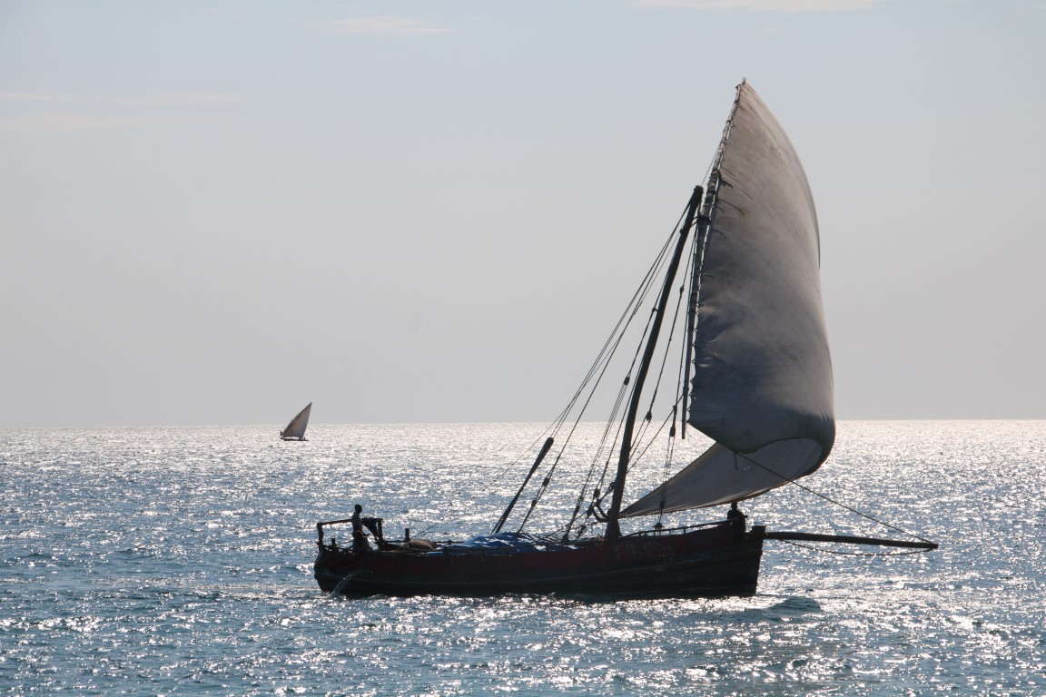 La vieille ville est entourée par l’océan indien – lorsqu’on regarde l’horizon on voit passer des boutres ou dhows, un type de voilier arabe traditionnel: