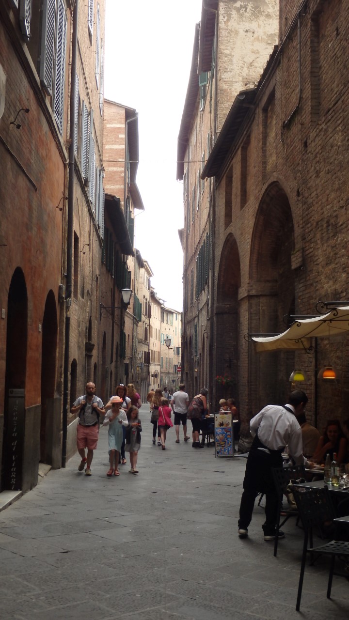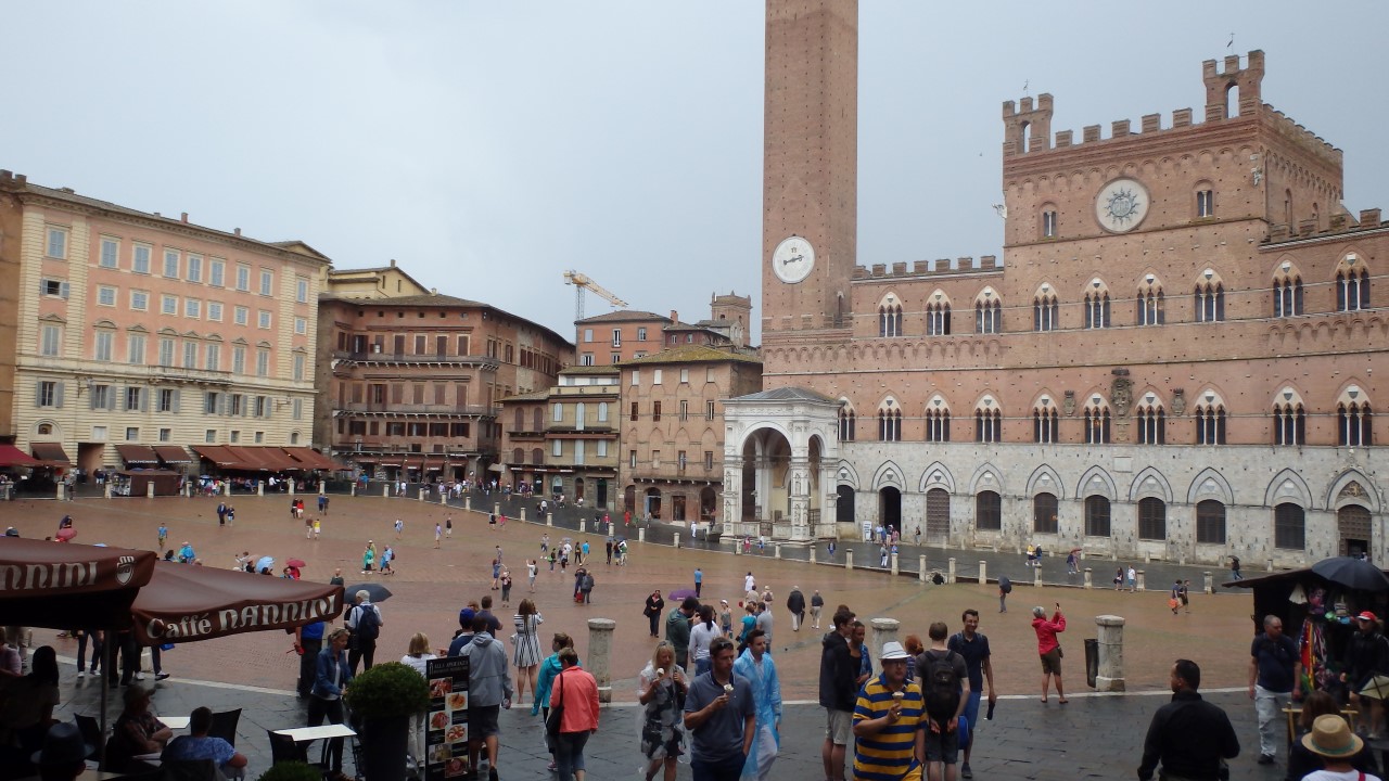 Nous nous sommes rapidement rendus sur la place centrale de la ville (la Piazza del Campo). Toutes les rues de Sienne convergent vers cette grande place en forme de coquille…