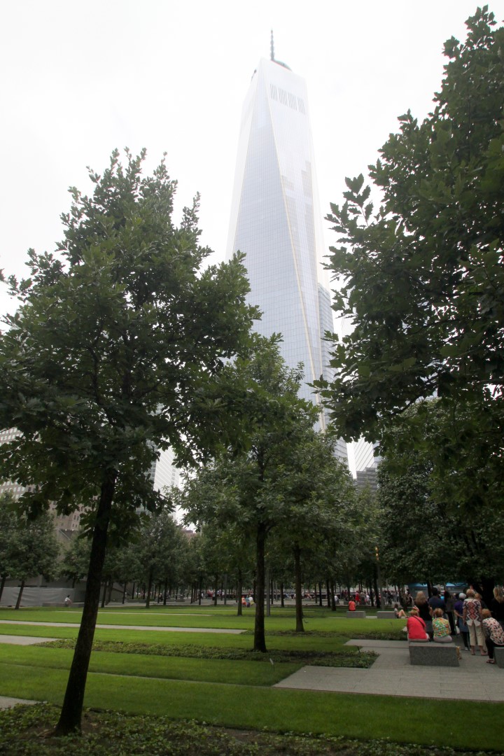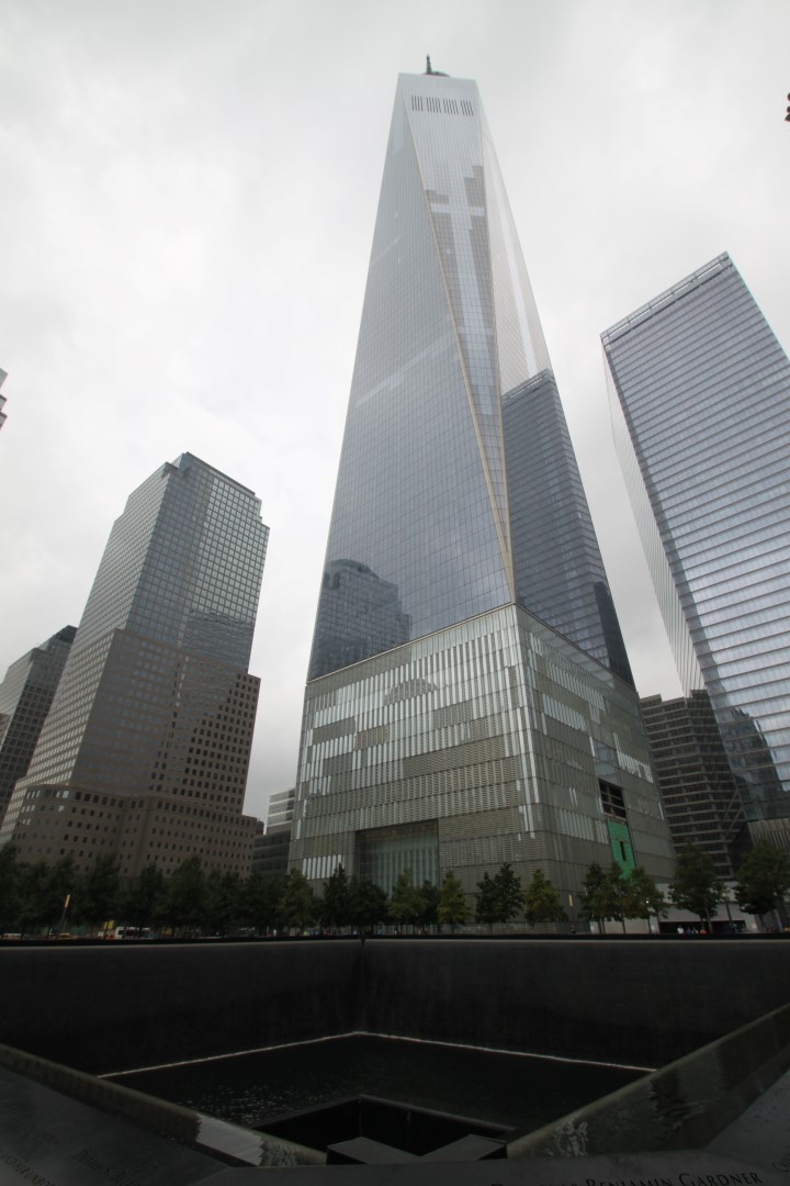Depuis les bassins, on a une vue imprenable sur le One World Trade Center. C’est le principal bâtiment du nouveau complexe World Trade Center et le plus haut gratte-ciel de l’hémisphère ouest. Il mesure 1 776 pieds (541 mètres), en référence à l’année de la déclaration d’indépendance américaine. Il a été inauguré en novembre de l’année dernière.