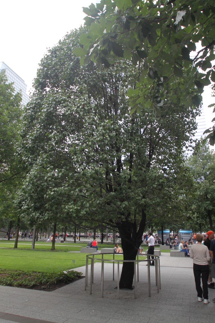 Un seul arbre diffère des autres, c’est un poirier connu sous le nom de « Survivor tree« : il a été retrouvé dans les décombres après l’attentat, réduit à une souche. L’arbre a été soigné dans un parc de la ville de New York et mesure aujourd’hui 9 mètres. C’est devenu un symbole de survie et de résilience.