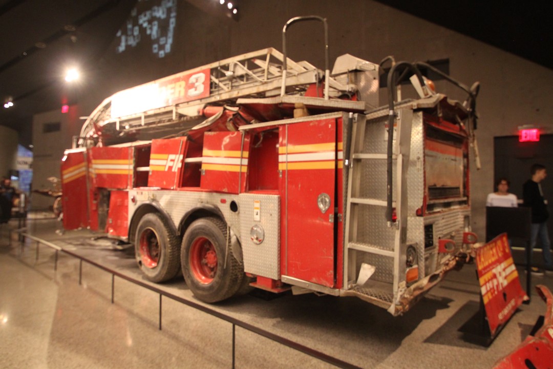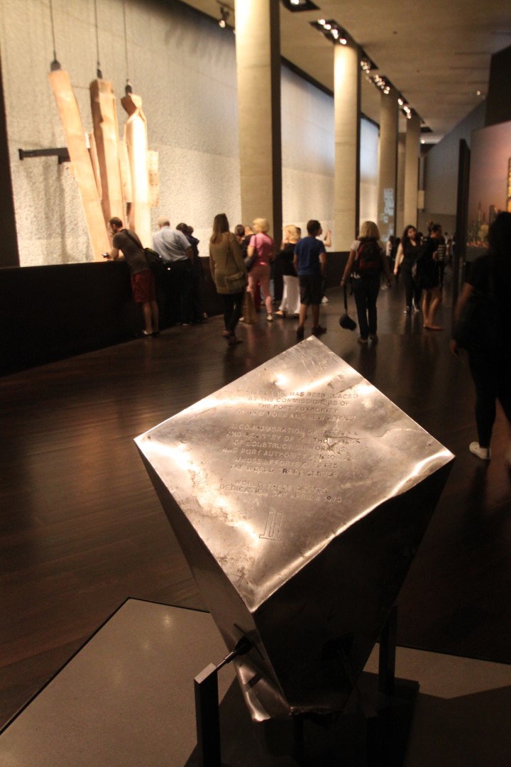 L’exposition historique raconte d’abord de façon chronologique les évènements du 11 septembre, puis s’intéresse à l’avant et l’après 11 septembre. De nombreux objets personnels sont exposés: des sacs, des portefeuilles, des chaussures… autant de fragments de vie qui racontent une histoire. La visite a été conçue de façon très sensorielle et émotionnelle, on entend par exemple des enregistrements de conversations entre sauveteurs, des appels d’urgence passés par les gens coincés dans les tours. Le plus poignant est sans doute les messages laissés à leurs familles par les passagers des avions détournés, pleinement conscients de la fin qui les attendaient. C’est ce qui s’est passé sur le vol 93, que les terroristes avaient vraisemblablement prévu de projeter sur le Capitole: les passagers ayant pu parler à leur proches ont eu vent de ce qui s’était passé à New York et ont décidé de se sacrifier pour éviter que l’appareil n’atteigne pas Washington. Ces enregistrements sont glaçants, mais je n’ai pas trouvé que l’exposition laissait part au voyeurisme. Les parties les plus perturbantes de l’exposition sont signalées, et les visiteurs peuvent faire le choix de les contourner.