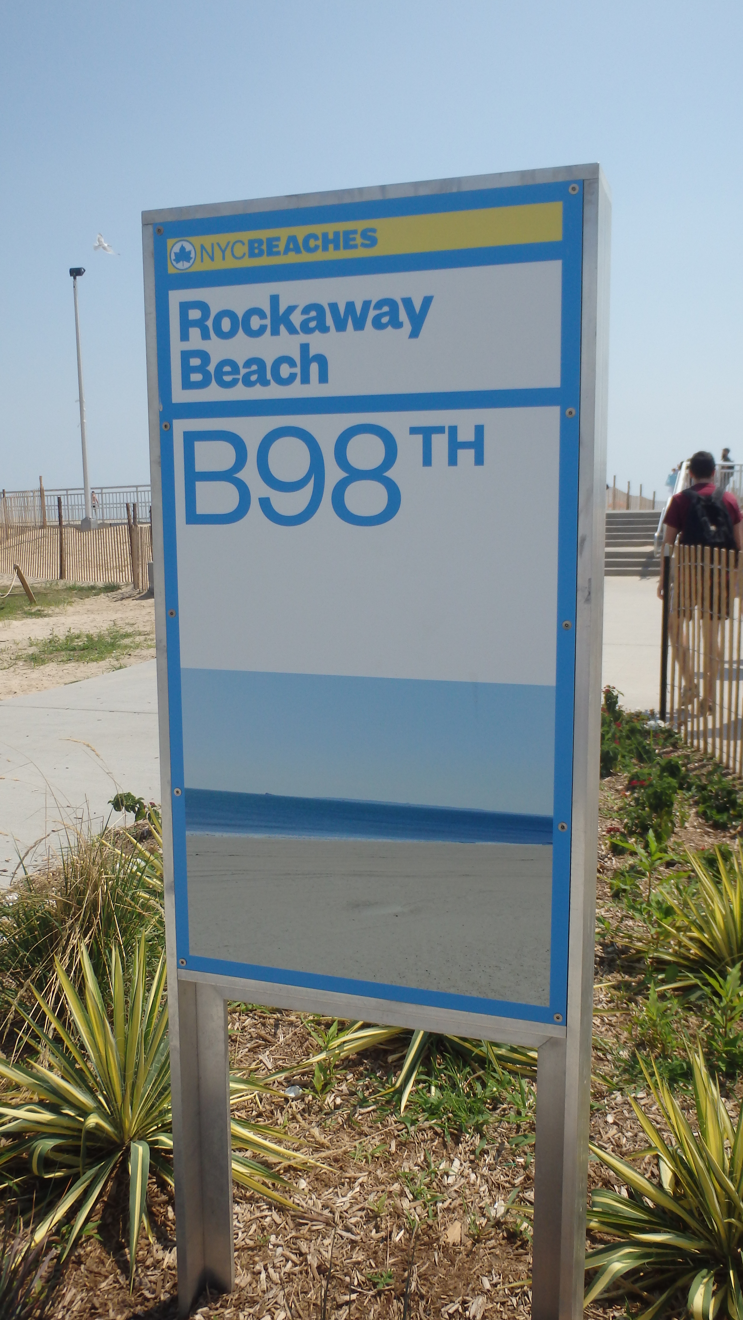 Il y a plusieurs accès à la plage à Rockaway Beach. Certains sont dédiés au surf et d’autres plus familiaux avec une petite balade de front de mer, des stands pour manger et des étendues de sable relativement vastes. Nous, nous sommes descendus du métro à « B98th » qui a l’avantage d’avoir plusieurs stands sympas pour manger, avec des cuisines du monde entier.