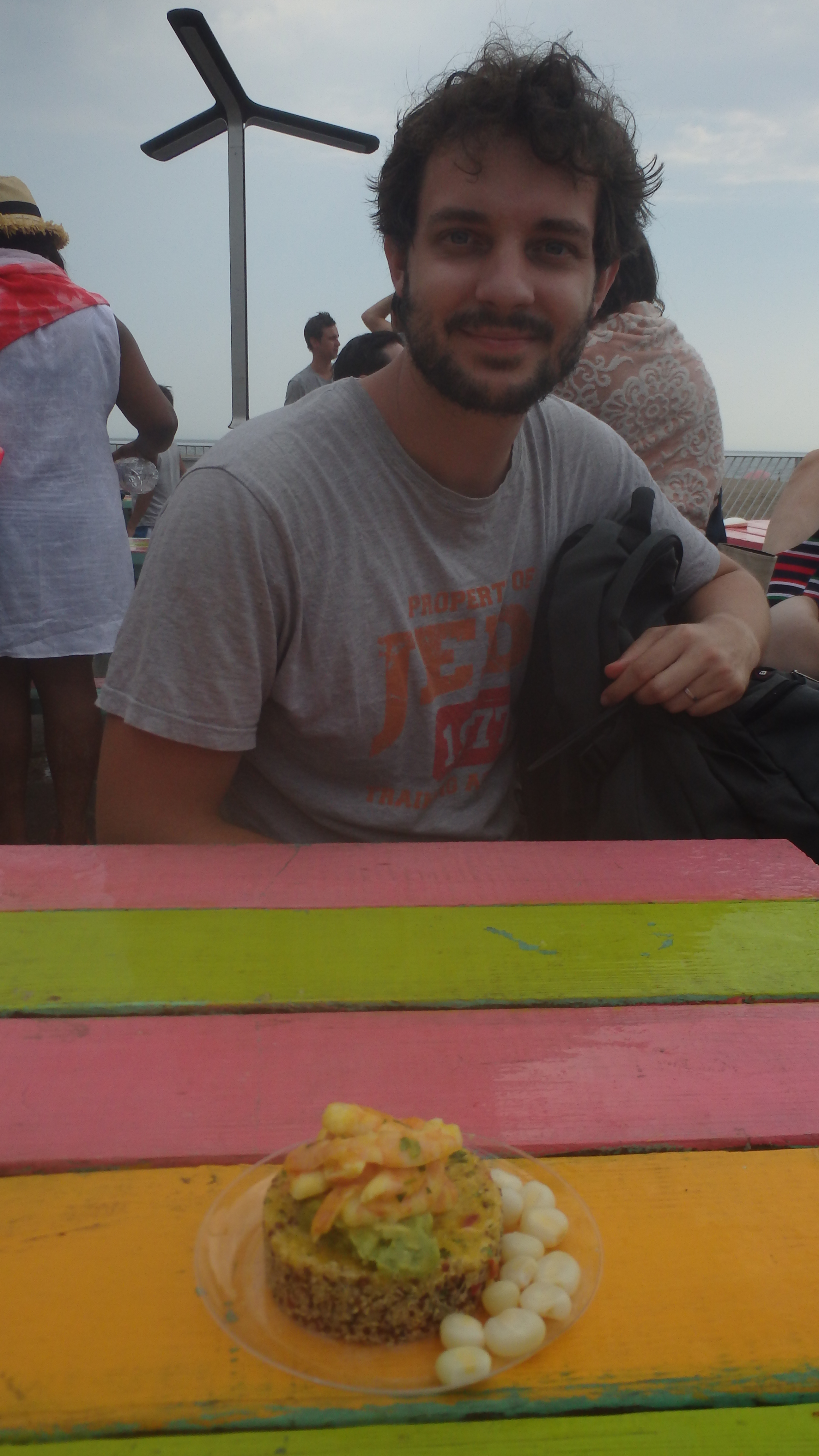 J’avais un peu peur que l’eau soit trop froide mais finalement, c’était parfait, d’autant plus qu’il faisait dans les 32° cette après-midi donc cela nous a fait le plus grand bien! Après un petit bain et une petite bronzette sur la plage, nous avons testé les stands de nourriture (il faut dire aussi que l’arrivée inopinée de la pluie a un peu précipité notre départ de la plage…). Au menu, du classique burger/frites maisons, des ceviches péruviens, sandwichs suivant une recette d’Asie Centrale, etc. Le choix est difficile! Au final, on a opté pour un ceviche de crevettes fraîchement pêchées, un délice!