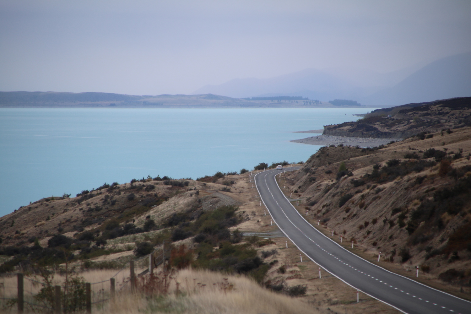 Conduire sur les routes de l’ile du Sud, notamment les routes de l’intérieur avec de sublimes lacs d’un bleu laiteux, les chaines de montagnes avec les sommets encore enneigés, etc.